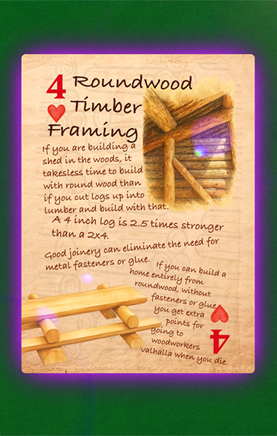 Excellent info, I would've been far better off if I'd jumped thru time and watched this before trying to frame up my chicken coop and wood shed using trees I cut from my property and sawed to fit.  The bracing idea especially would have saved me a ton of headaches, and that joinery info.  I plan to use a lot of what I learned from the movie when I start tackling my hybrid wofati/sunken greenhouse project this year.   The most incredible thing about being here is that no matter what jumps into my head I can come to the forum and do a little searching and there's almost always someone who has done the same thing and offered up all kinds of useful experience and ideas.   Thank you once again for gathering all this knowledge and all these ideas in one place where we can learn and try and overcome and improve together!