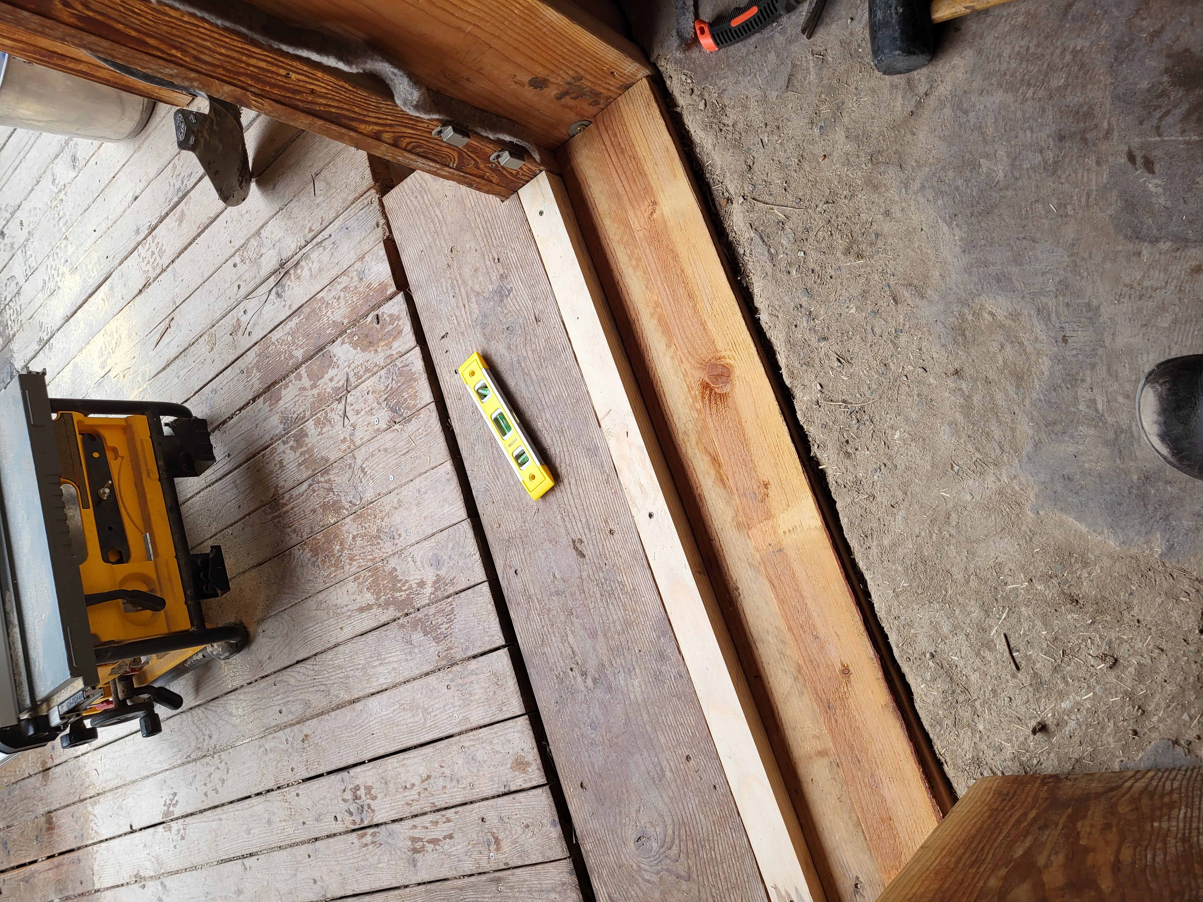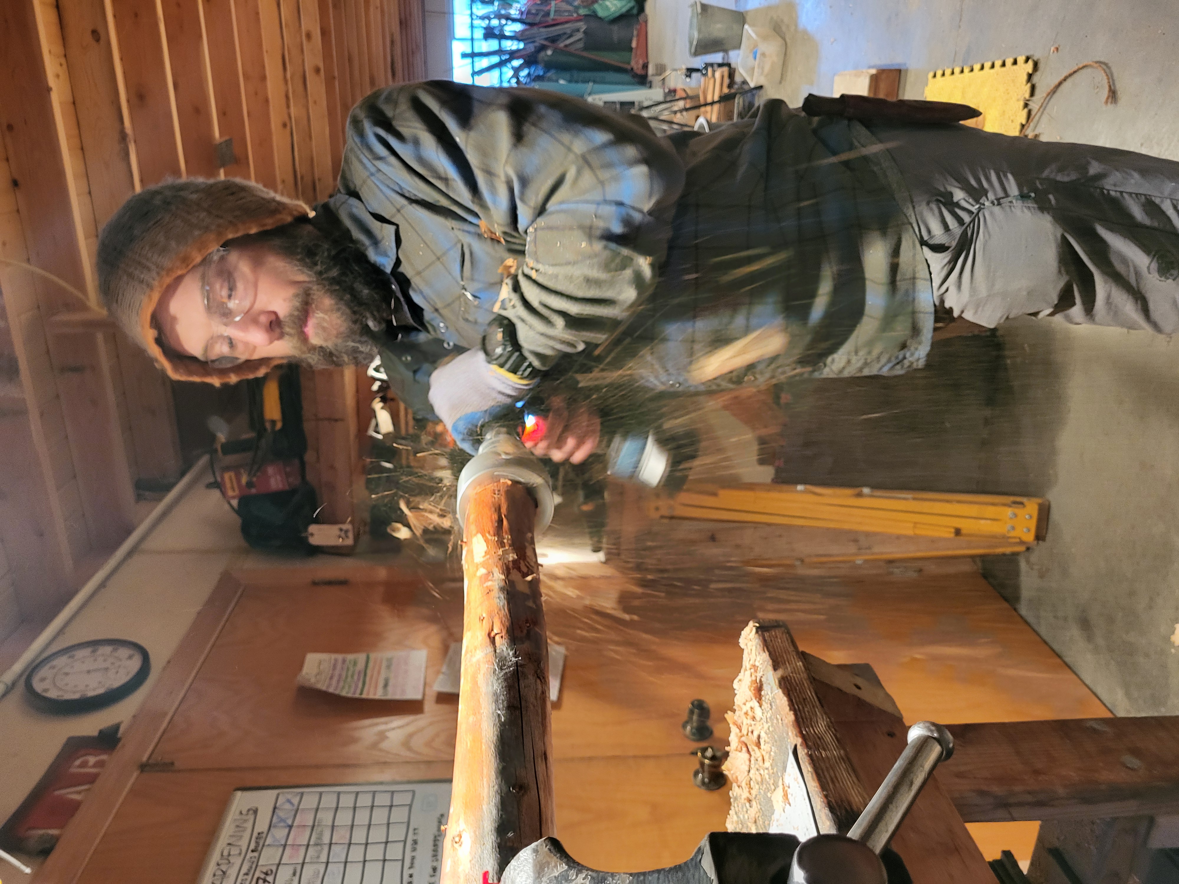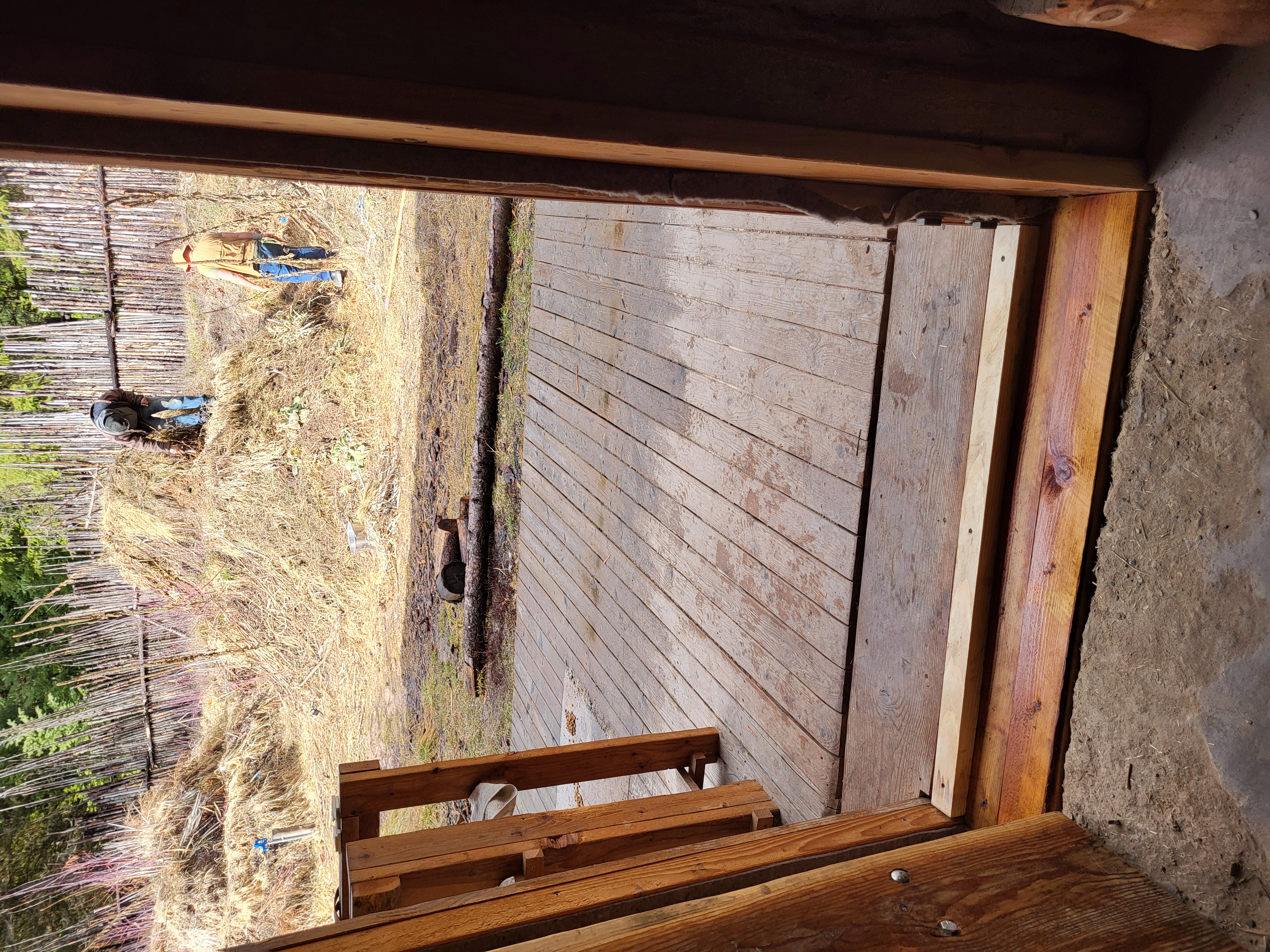 . We got materials cut and poles debarked and ready but were not able to finish the project before heading up to the Labs for afternoon tasks (so more on this build will come tomorrow/later this week). We gathered tools and materials and headed to the Allerton Abbey. There, Esteban and I continued the fix to the threshold for the front door. Starting with WL milled scrap lumber of a similar thickness (~3/8 inch), we worked to make a stable and aesthetically pleasing "veneer" over the fix I shared from earlier this week. Today we got planks cut, fit, leveled, and ready to be linseed oiled and then final installed tomorrow. Lastly, Stephen, Esteban, and I worked on parts of the hugels at the Abbey to begin casting cover crop seeds to continue to promote an active soil (and considering some earlier than usual growth all over WL and basecamp, it is worth getting ahead on the grasses and starting to get other helpful plants growing). The cover crop included wild peas, sunflowers, lupine, dandelion, daikon radish, alfalfa, and a couple of others (I would need to verify those with Stephen). I think I did a good job worthy of the teaching I have received from my wife
