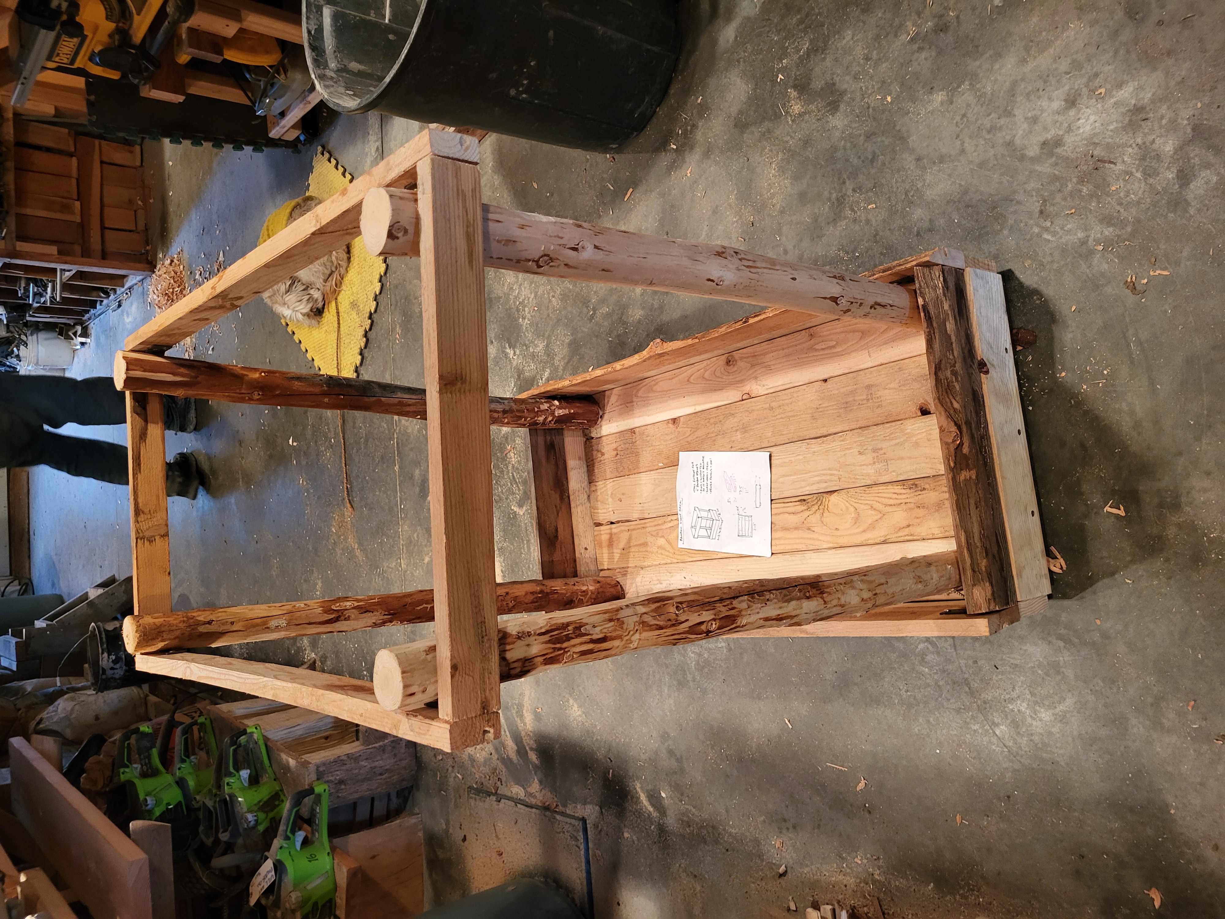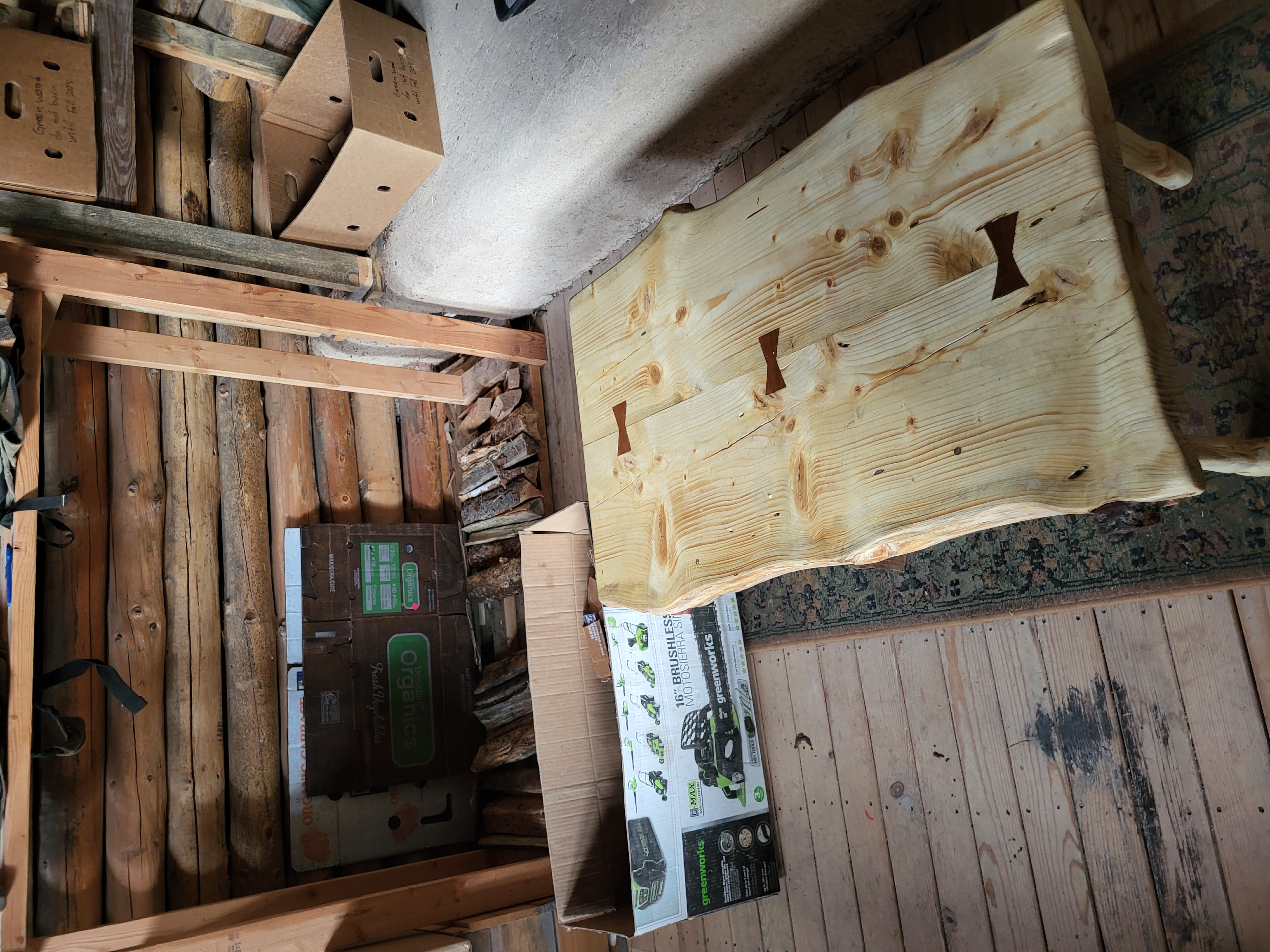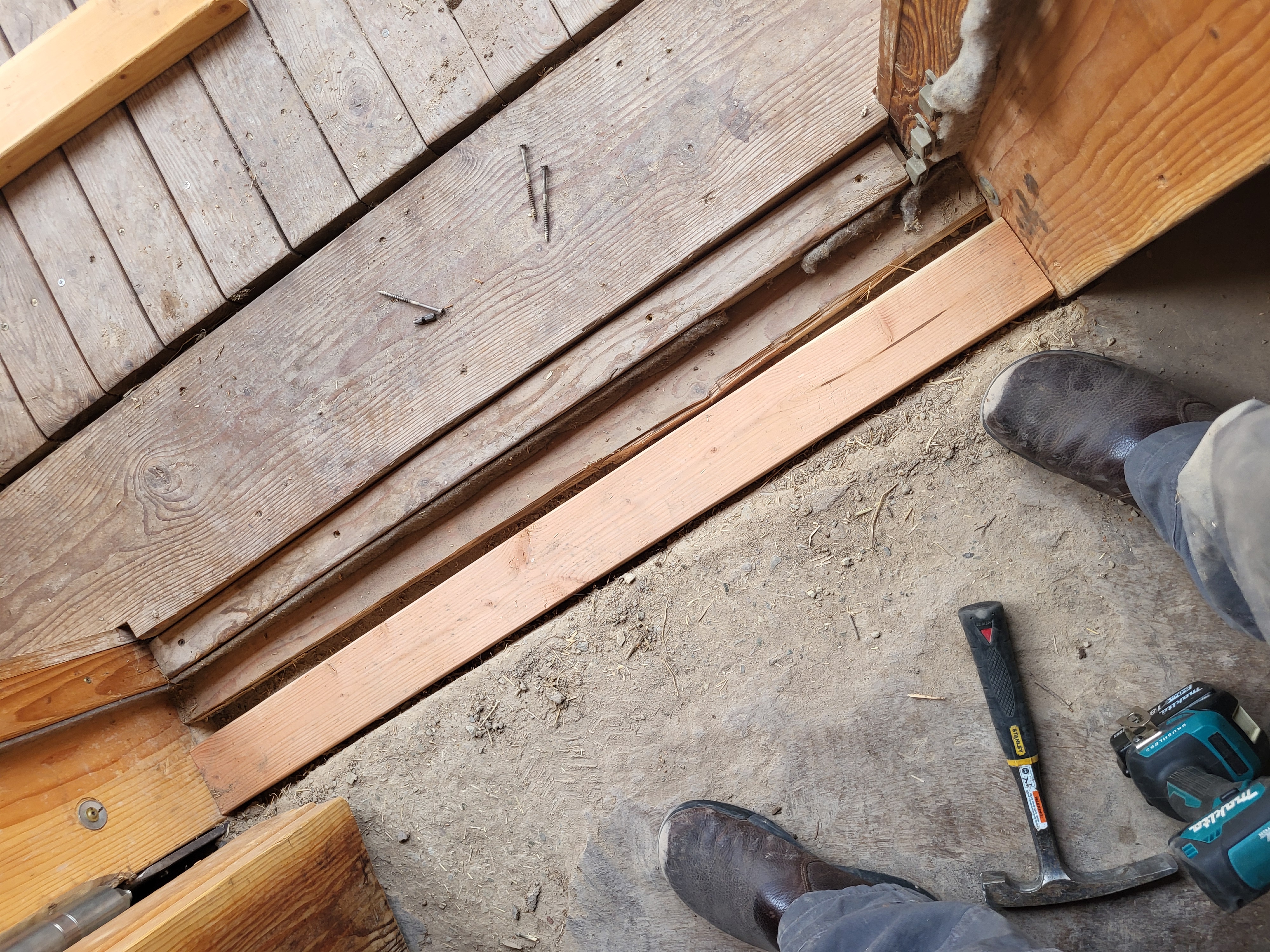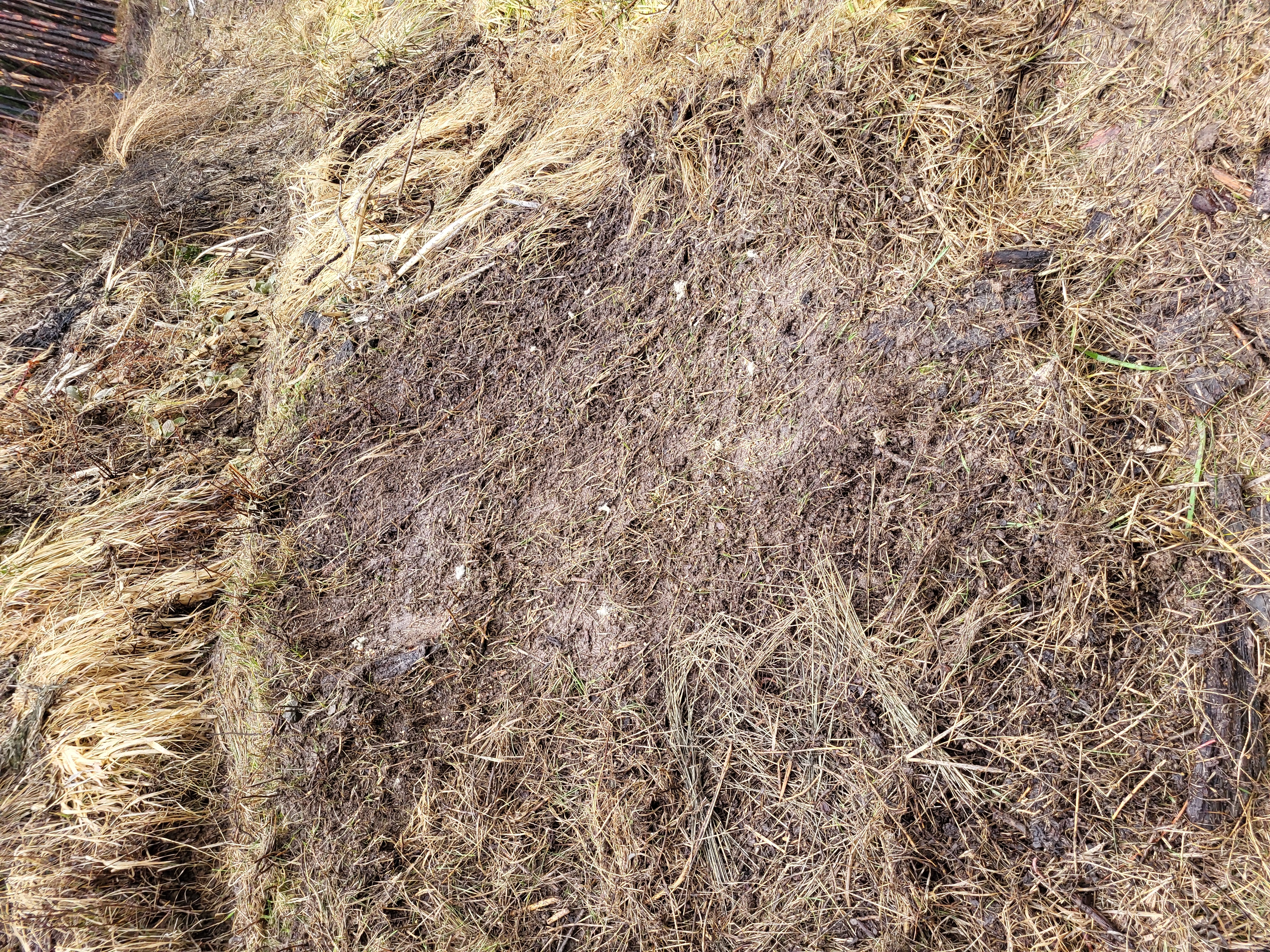 . We got materials cut and poles debarked and ready but were not able to finish the project before heading up to the Labs for afternoon tasks (so more on this build will come tomorrow/later this week). We gathered tools and materials and headed to the Allerton Abbey. There, Esteban and I continued the fix to the threshold for the front door. Starting with WL milled scrap lumber of a similar thickness (~3/8 inch), we worked to make a stable and aesthetically pleasing "veneer" over the fix I shared from earlier this week. Today we got planks cut, fit, leveled, and ready to be linseed oiled and then final installed tomorrow. Lastly, Stephen, Esteban, and I worked on parts of the hugels at the Abbey to begin casting cover crop seeds to continue to promote an active soil (and considering some earlier than usual growth all over WL and basecamp, it is worth getting ahead on the grasses and starting to get other helpful plants growing). The cover crop included wild peas, sunflowers, lupine, dandelion, daikon radish, alfalfa, and a couple of others (I would need to verify those with Stephen). I think I did a good job worthy of the teaching I have received from my wife