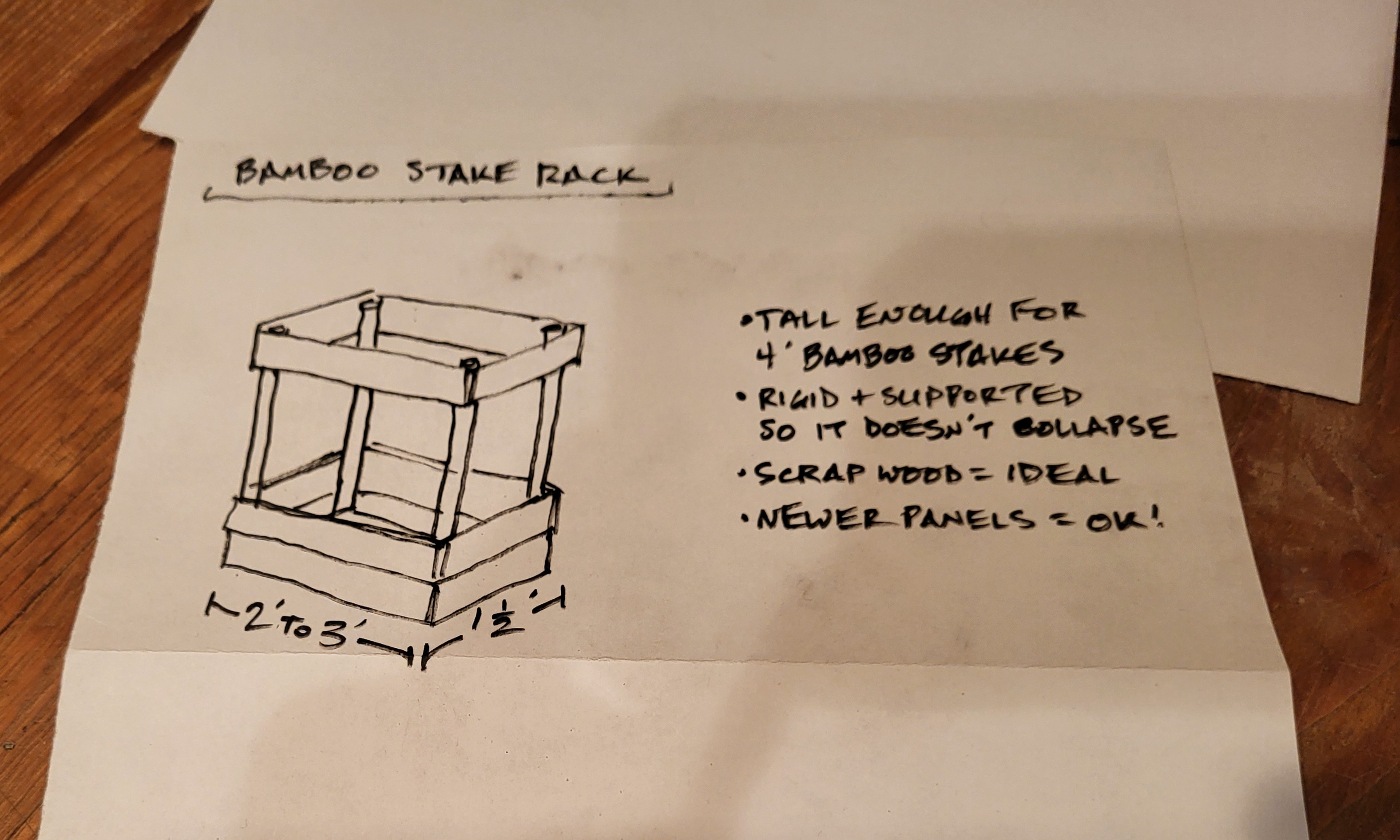 ) and needed to be disassembled into resusables, burnables, and disposables. Interestingly enough, while I deconstructed the stool, Stephen identified a need in the Library that could potentially use brackets I had salvaged from the stool (always great when there is that kind of serendipity). The project for the need in the Library was a "rack" for standing bamboo poles (see Stephen's concept posted below). Esteban and I looked through available materials around the shop and came up with a design using the materials gathered in the photo below. Our design will require us to use various skills and techniques that both of us were eager to exercise while here at WL, so win-win