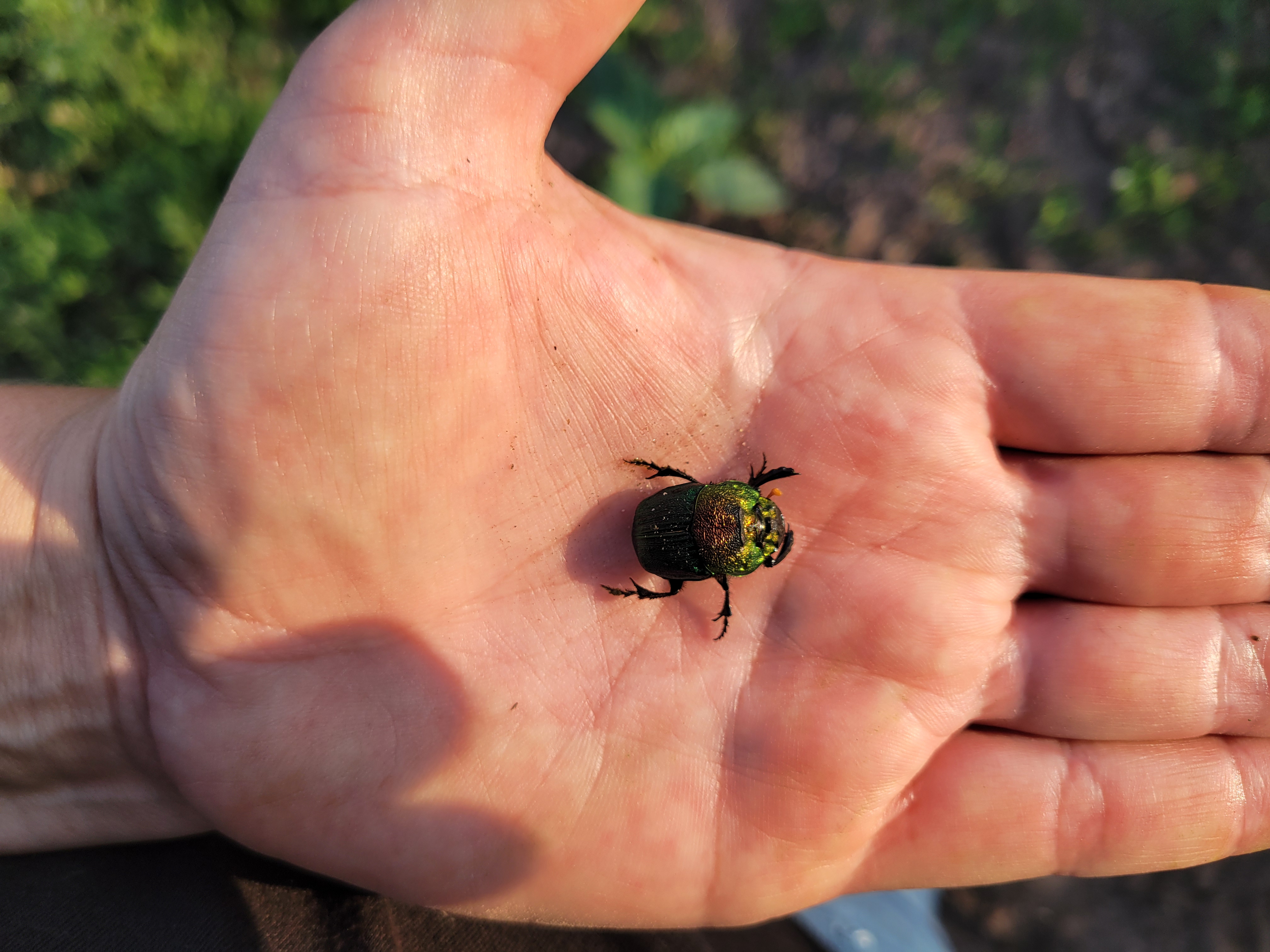 I'm not sure what kind of beetle this is, but it was pretty. Saw him crawling across my lawn.