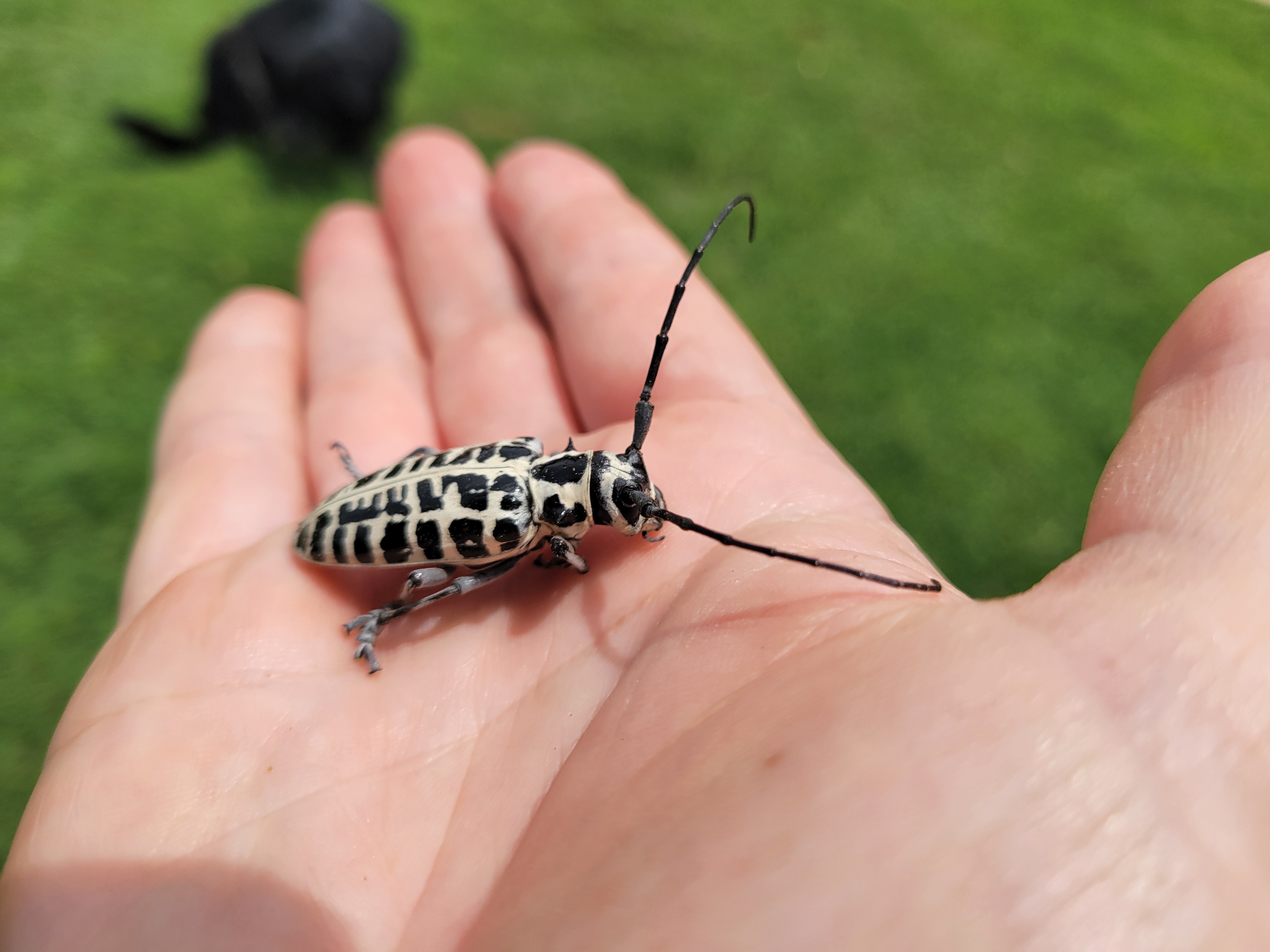 I cut down a eastern red cedar early this year to make room for more fruit trees. I found out it was being infested by pine bark beetles. Then I saw lots of tiny ant-like insects crawling around the barks. I thought those were pests at first. I took some pictures and looked online. Turned out they were checkered beetles (Enoclerus nigripes), the beneficial predators of bark beetles! I left the wood piles in place for a few months. Hopefully the good guys had finished up and found new food sources nearby.