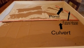 The model is also to contour scale. I use LIDAR here and 2 foot elevations, but admit it is hard to detect in the picture. Slopes here are 3-9 percent. To get that, I cut cardboard and glue them up in layers to form my hills and valleys. To eleminate the "steps", I simply spread out drywall compound to give me a very accurate contour of the land. This alone will show you where natural swales should go, keyline planning, Yeoman plowing, etc...