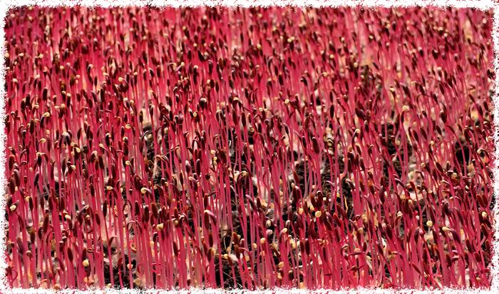 Regarding process: Water the seeds overnight, then strain. With a spoon spread them out evenly onto the previously (!) watered and flattened soil.