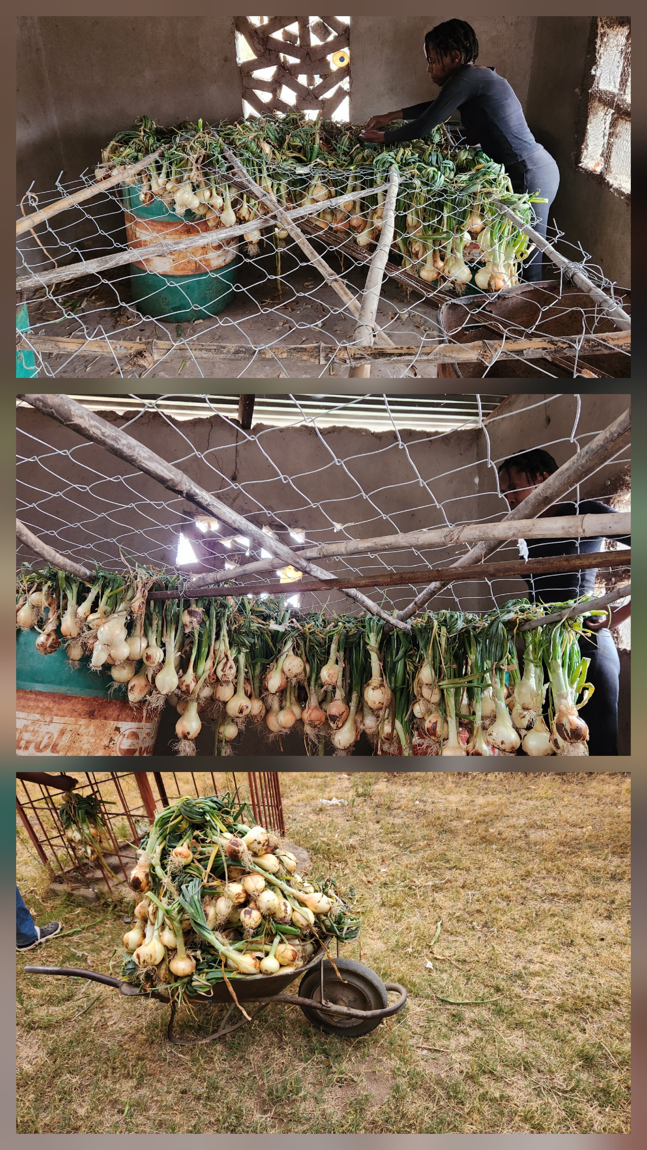 The onions have brought so much excitement, and it's such an incentive for developing a productive culture. The bulbs on most of the onions are not as big as I had hoped, so we are just going round, picking on the onions that have fallen leaves, meaning they will no longer grow. We will give the rest more time, to grow bigger.