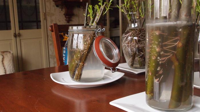 I bought approximately 50 Hybrid Willows about 5 weeks ago. I set them into water filled jars at about 2/3 depth (6 inches) for about two weeks. Then transferred them to 3 gallon buckets with "Sta-Green 2-cu ft Tree and Shrub Soil With Fertilizer". It contains: