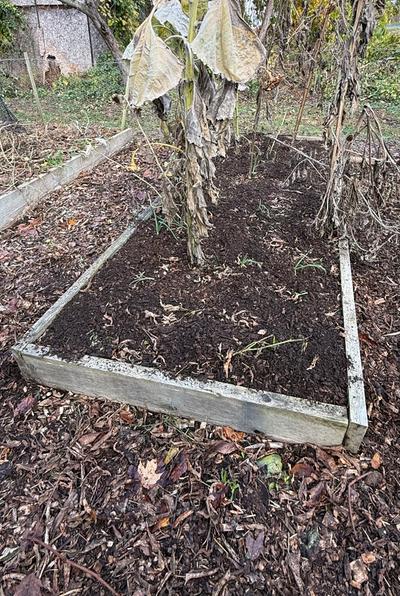 I am in my third growing season utilizing mulched paths between my raised beds. I have decided this fall that I would start harvesting the generated compost in these paths to top dress my growing spaces before the freeze sets in.