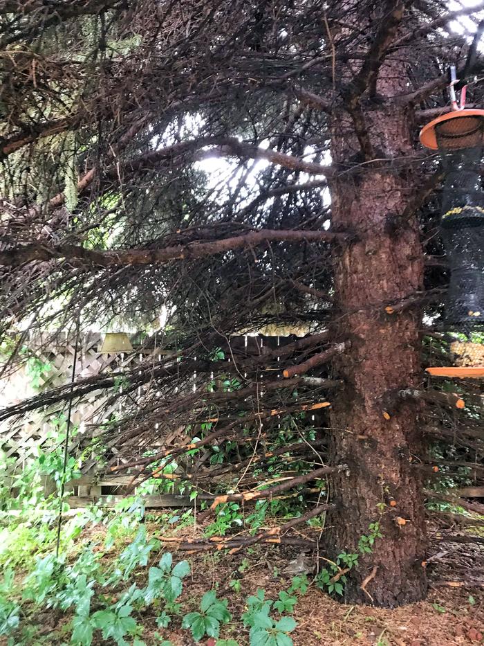 This pine tree came with our house a couple years back. I'm wondering if it's healthy enough to save. Some of the branches droopy. I'd just like suggestions on whether it's savable and what I can do to help it thrive. Thank you.