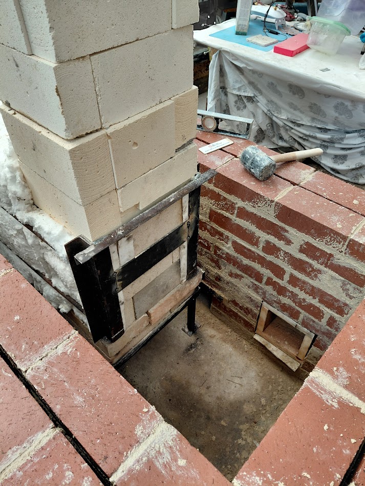 We bridged over the core, using SW gasket, and mortar to protect the plain clay bricks from excessive heat.