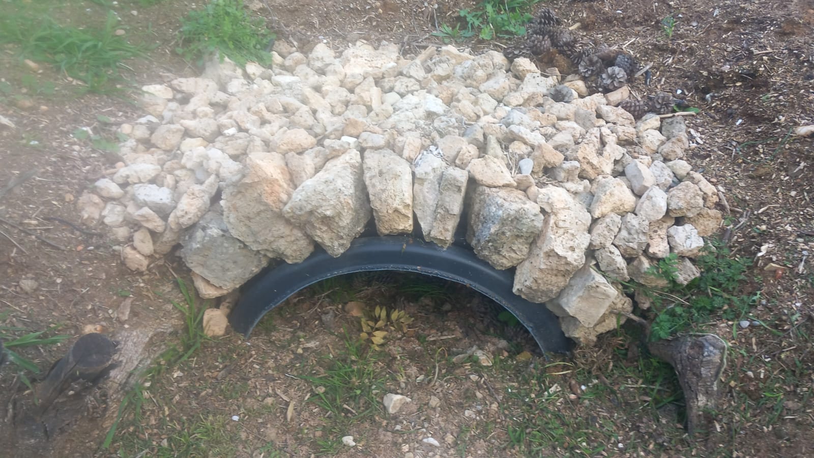 Rebecca Widds wrote:... we were told by the neighbours he was given the material for free and just liked it". It's black rock that is not local...