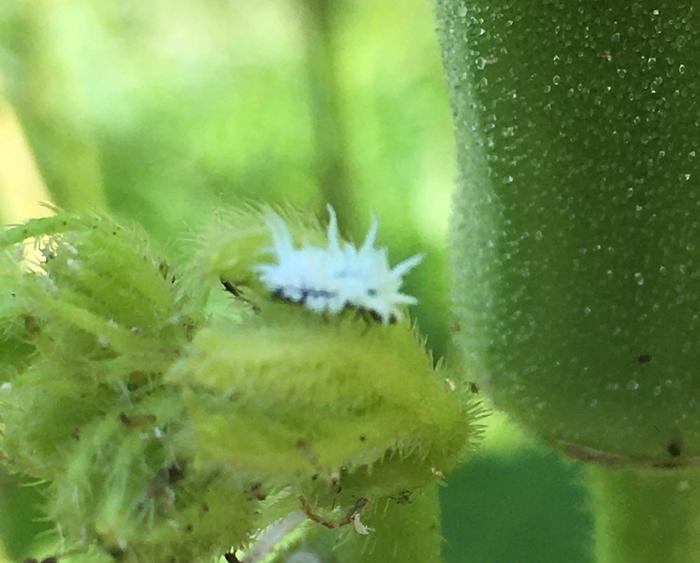 The brochure for the one that's easiest to buy, stuff called Botanigard, claims "broad spectrum control" of aphids, leafhoppers, mealybugs, plant bugs, psyllids, thrips, weevils and whiteflies. That's pretty broad! The stuff has a zillion strains in one bag, so that when you scatter it on your plants, all the bugs die. (Except maybe it doesn't actually work that well. Perhaps better to say, all the bugs are on the target list.) I don't want to cause that widespread toxic effect in my garden, no matter how safe the stuff is for mammals. Not in my garden, not anywhere on my property! For every bug that actually eats enough of my plants to bother me, there are a zillion kinds that are doing good work, or not eating enough to be a problem. I will