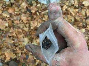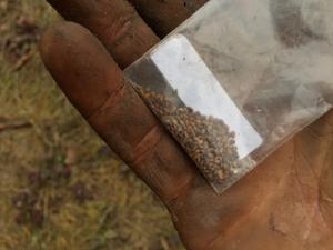 Since it was a bit hard to have three people shovelling out of the tractor bucket to put sand on the roof of the Bermshed, I got to be assigned to planting living fence seeds!