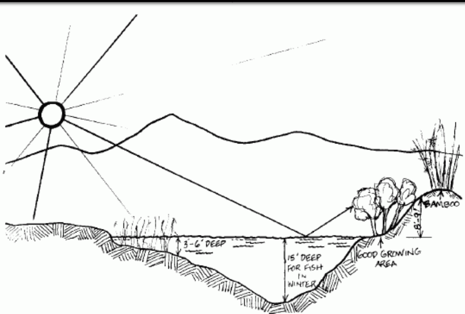 sun trap bank with pond reflecting heat and light
