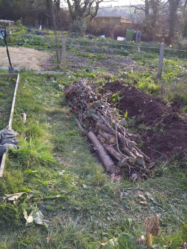 I noticed a lot of the other allotment owners were cutting down their brussel sprout stems and throwing them on a rubbish pile. These are quite woody but not as woody as, er, wood. Would these be OK to put on top of he wood and under the turf ans soil.