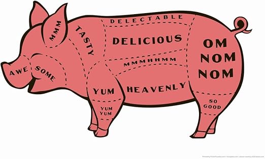A picnic is also a name for one half of a pigs shoulder, with the other half being the butt. The picnic is the upper arm part. I don't know who came up with the names, but it can be confusing to those not familiar with pig parts. I've included a couple handy charts showing basic pig butchery part names. This picnic weighs 10.5 pounds and came from a Gloucestershire Old Spot raised on pasture at a small farm near Nashville TN. My wife and I trimmed and salted it Wednesday, applied a spice rub Thursday, and it's now on the smoker this friday being smoked with Pecan. I hope readers stick around, I'll be updating with more pictures throughout the night and day. I think I planned right, and hopefully this chunk of meat will be done by 5pm.