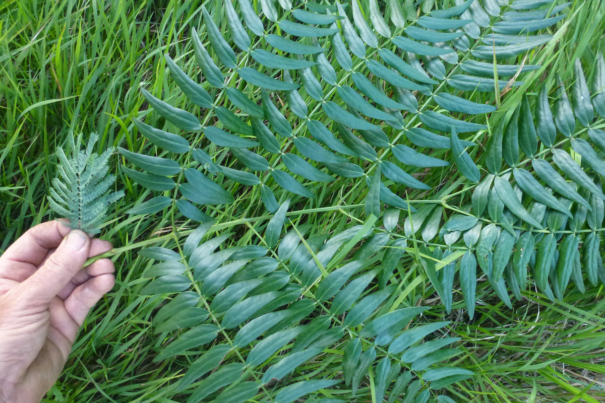 Acacia elata is my favourite of the genus, at least my favourite of the temperate types. It grows up to about 25m tall, and produces a useful cabinet timber. Also N-fixing of course. Handles frost, but not sure how much, probably only safe in USDA zone 9 up. This is the foliage of juvenile A. elata, with A. dealbata foliage for comparison. Pretty cool tree, highly attractive.