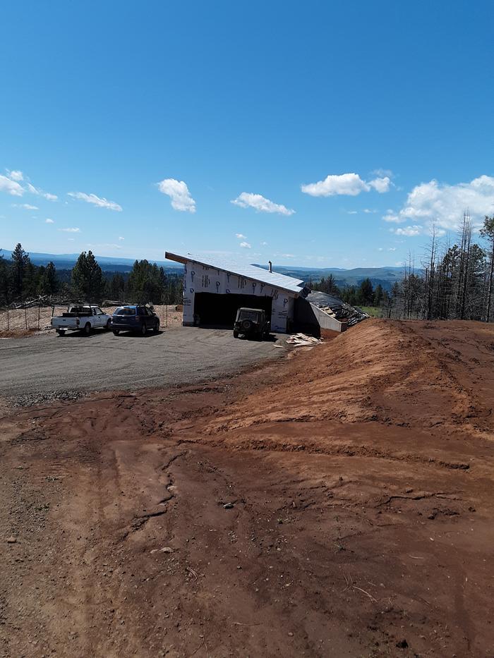 We are located in North Central Idaho. The overall structure is 60 foot long and 24 foot deep. 1440 square feet. The long back wall and 1/2 of one short wall are are made of concrete and buried, annulized thermal inertia style. The floor is also a slab of concrete. The roof was not earth covered. We only had one  layer of waterproof material over the thermal mass this winter. And even that was a little problematic as the mass was exposed several times to rain and snow over the winter due to wind blowing the plastic away during storms. The other short side has an attached garage that is not connected to the thermal mass.