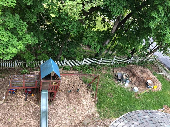 1. The kids’ play structure is nearby, and we load it up underneath with arborist wood chips every year, so that soil is becoming nice and rich and deep over time. When we remove it as they outgrow it, it’ll be a lovely place to plant.