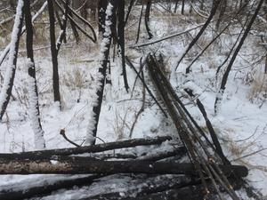 During the second half of the day, Jen and I unloaded Judy and junkpoles by the fence we're building at Basecamp.