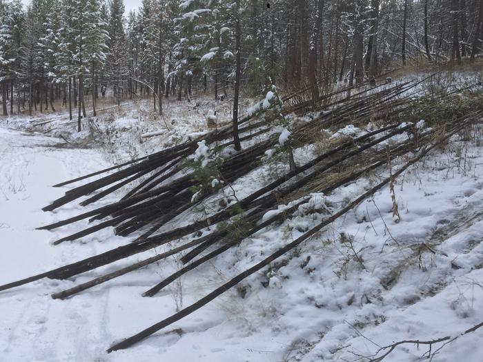These are some pictures of my work hauling logs off the mountain from a staging area I had placed them in earlier. I still have a couple more spots in the forest where I staged junkpoles that I need to take off the mountain.