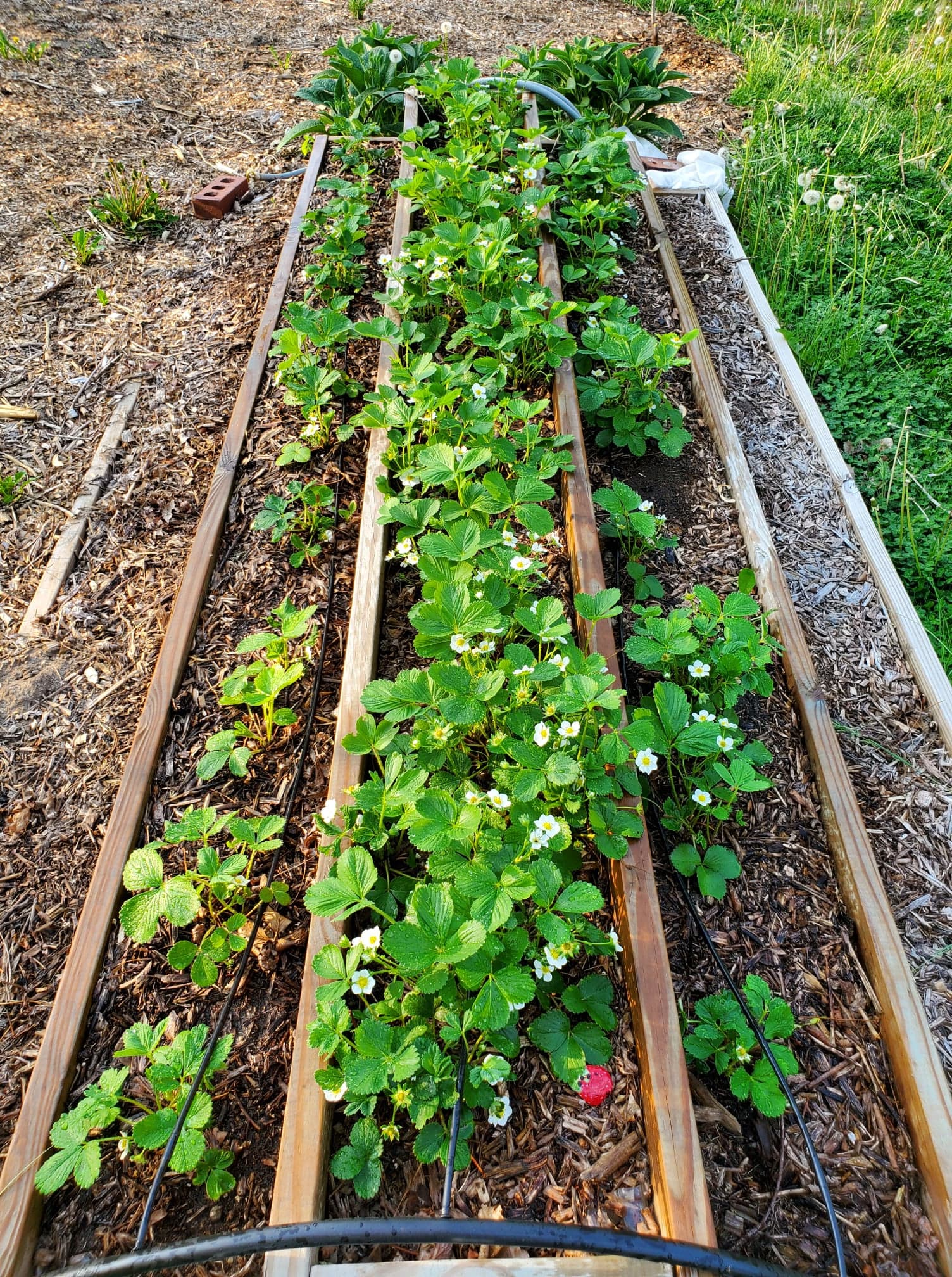 I had hoped to get this done sooner in the year so there would be enough decomposition into soil in tier two so the runners would have a home…. but that didn’t happen. Some of the berry crowns didn’t survive so I guess this year I’ll just let the runners fill in the blank spots on the top tier.