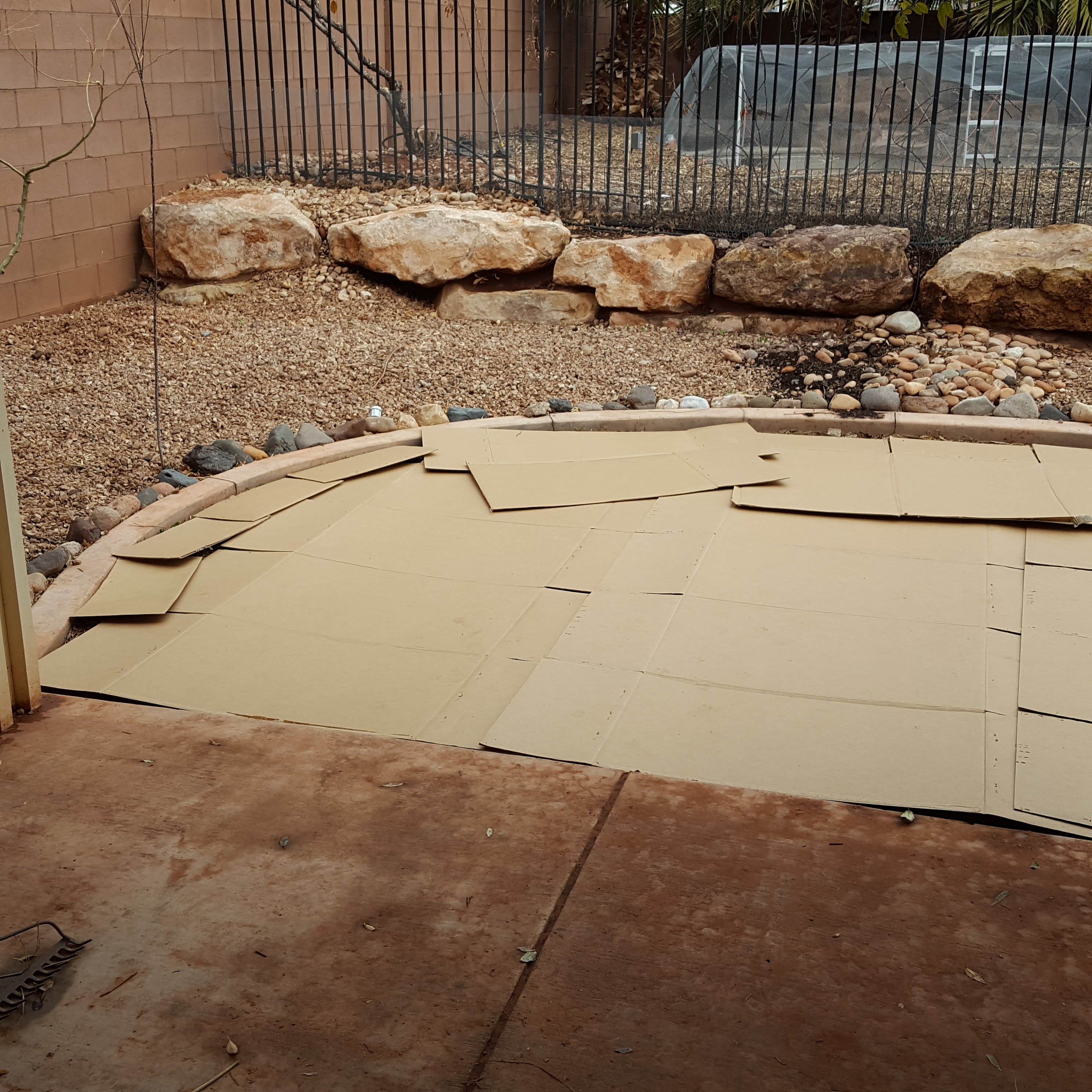 I just completed the second layer of wood chips and put them on thicker but the grass keeps popping up. I do realize that I can reach my hands into the lose wood chips and easily pull out a lot of the Rhizomes since there is no dirt. I am hoping that I can do this when the grass goes dormant. Maybe I can then use a rake and get more faster better cheaper.