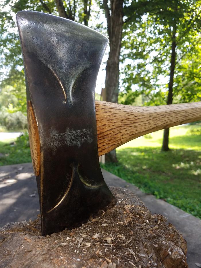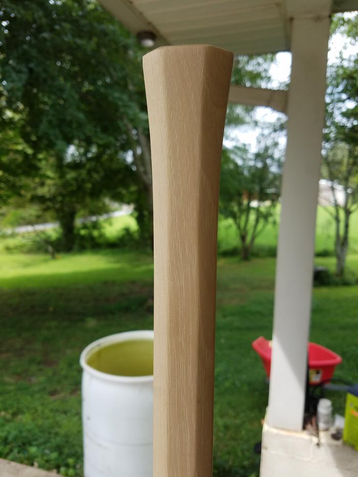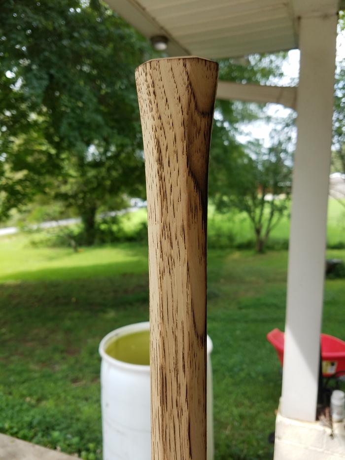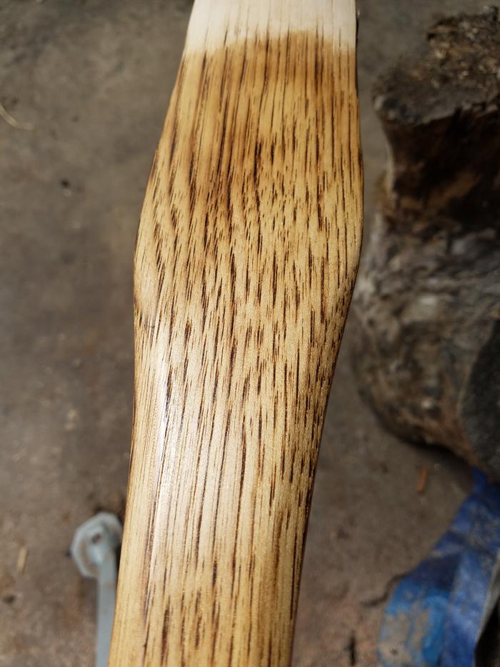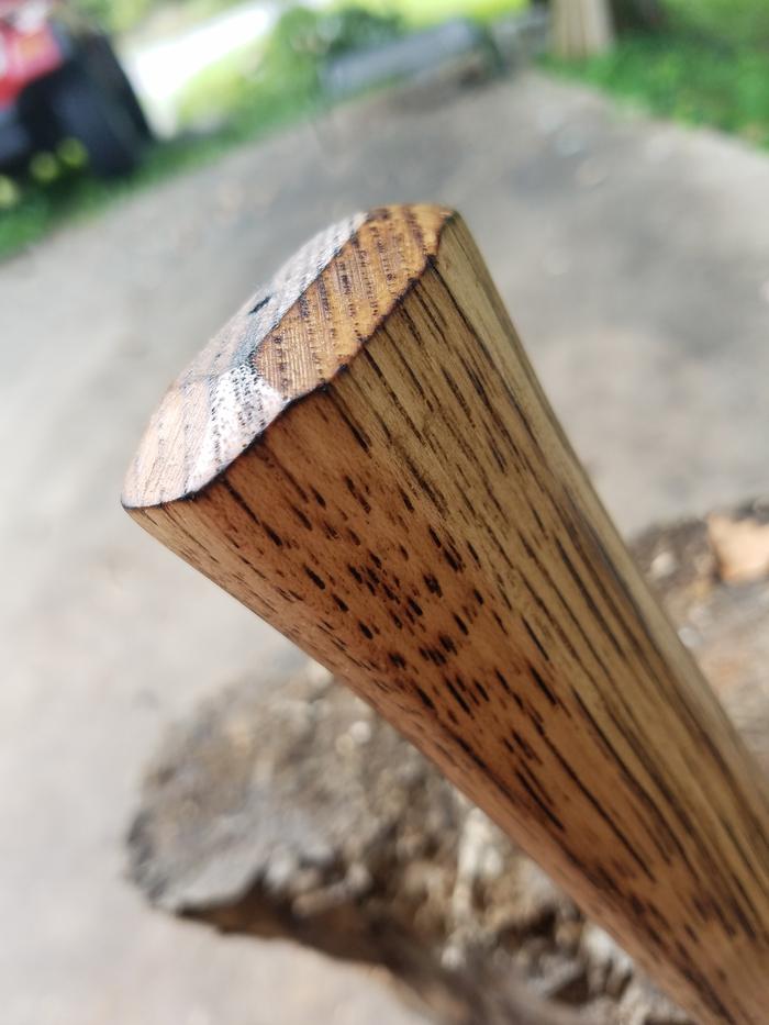 This is a simple way of achieving a nice stained finish on open grained woods like hickory. Traditionally, it seems only the lower grade of hickory handles were treated with flame, maybe to harden the surface against abrasion a bit. In any case, I find this finish quite attractive on many axes and other tool handles. It also helps restore the appearance of weathered wood.