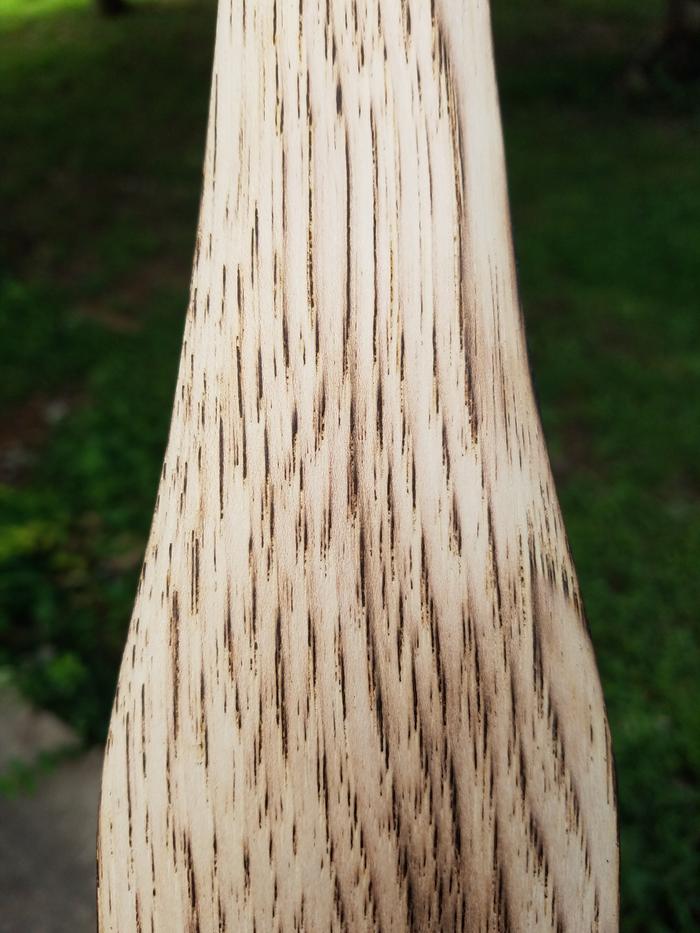 When the flame heats the wood, the moisture/sugars expand and leave the surface a bit rough. You may prefer this on a handle, otherwise you can gently sand the surface to make it smooth once again. If there are any areas that were darkened a bit too much, extra sanding can lighten it to match the rest. I like these sanding pads for this application.