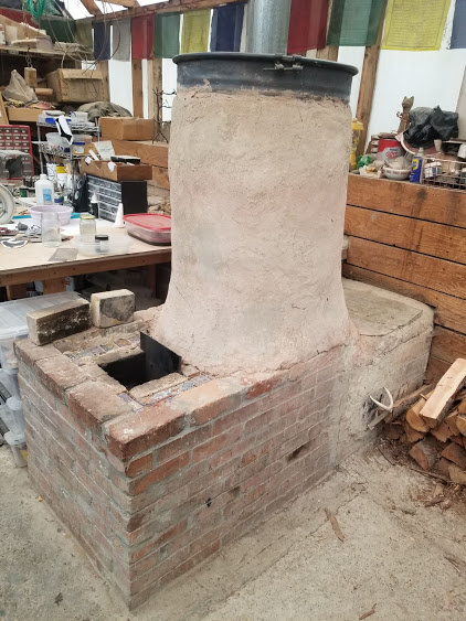Our RMH is still not quite complete. We can safely run it, but the bench seat back doesn't go all the way yet (still another 3' to go), and I want more mass around the barrel so there's more battery instead of so much immediate radiant heat.