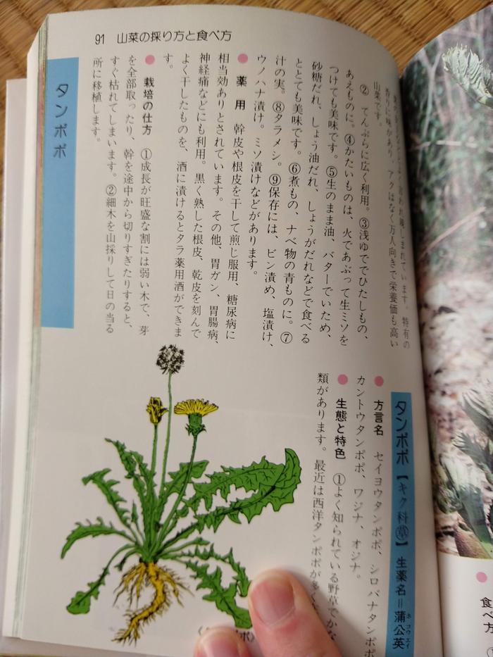 The book includes a lot of plants I haven't seen in other sansai guide books. The guide has useful graphics and short text packed with information. The text is short enough that it could probably be translated reasonably accurately by showing pictures of the pages or live camera to the google translate app on a smartphone. I'll attach a sample page at the bottom.