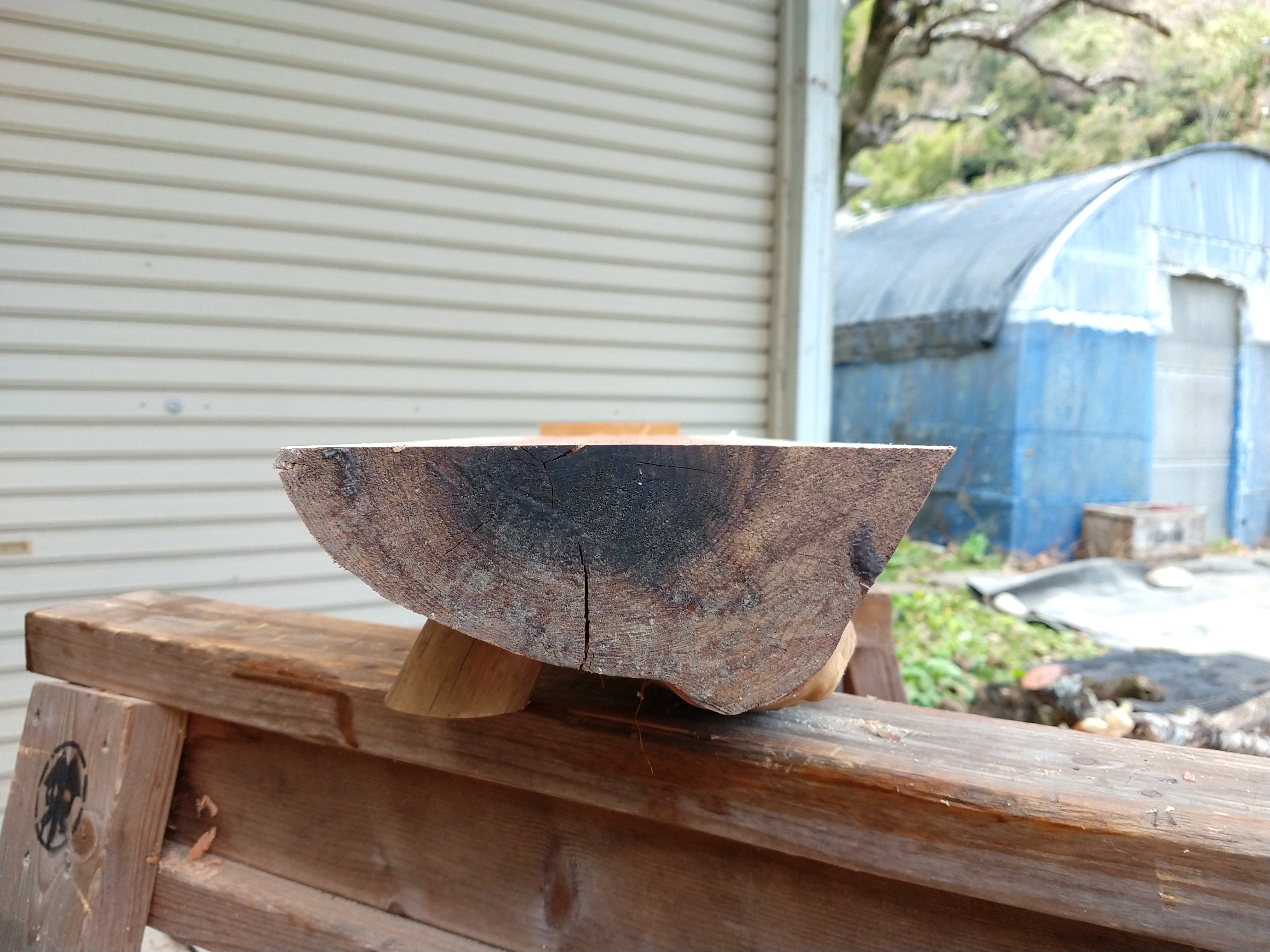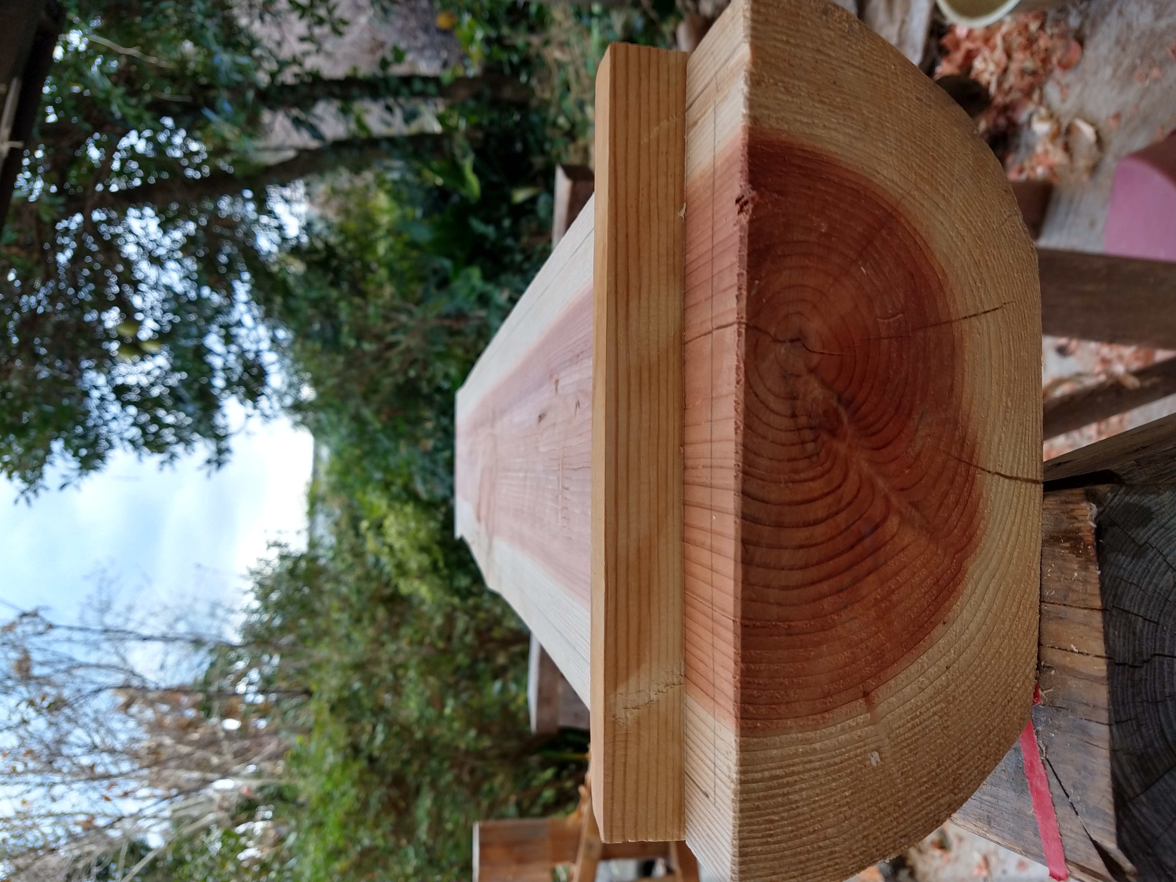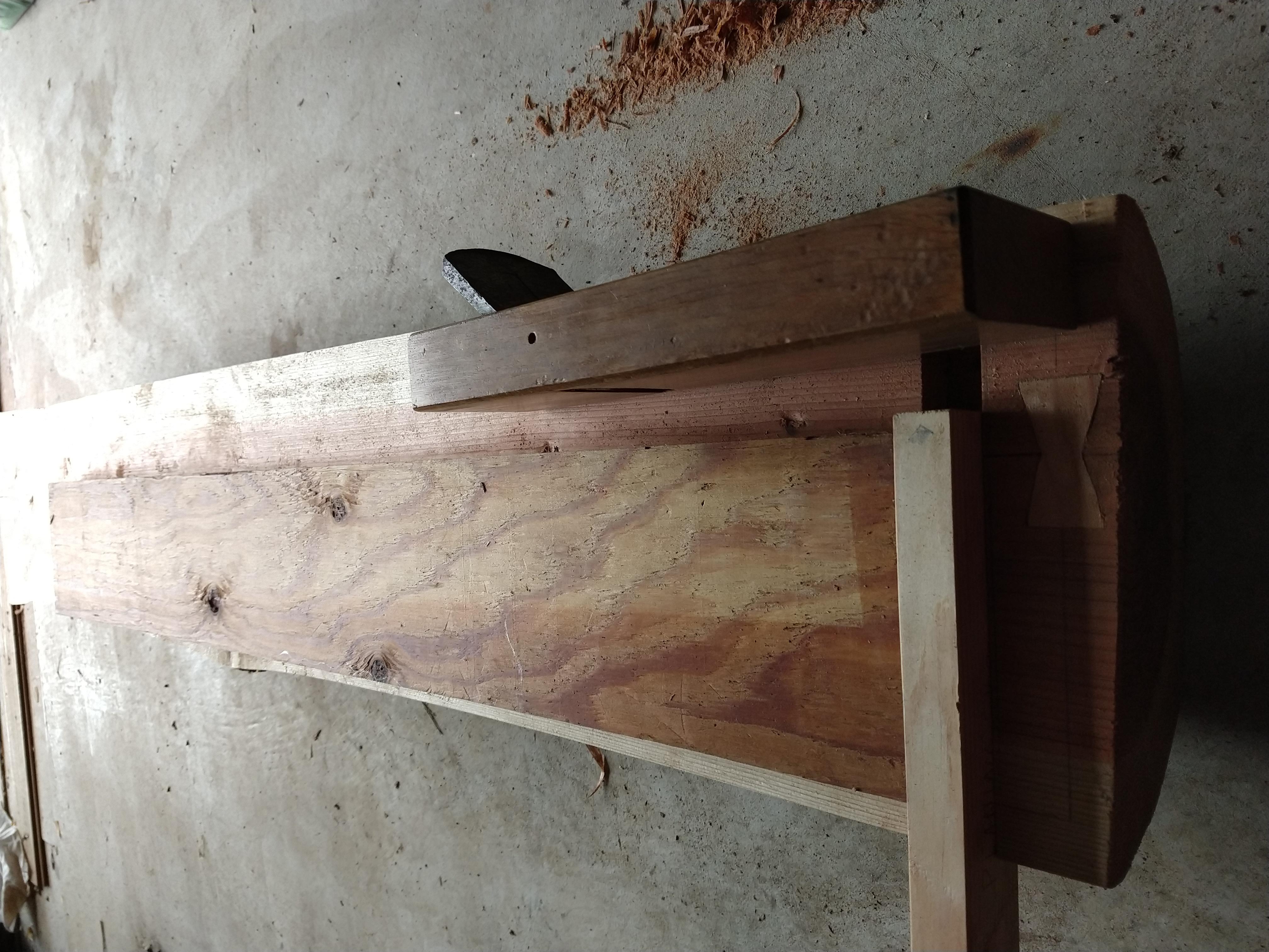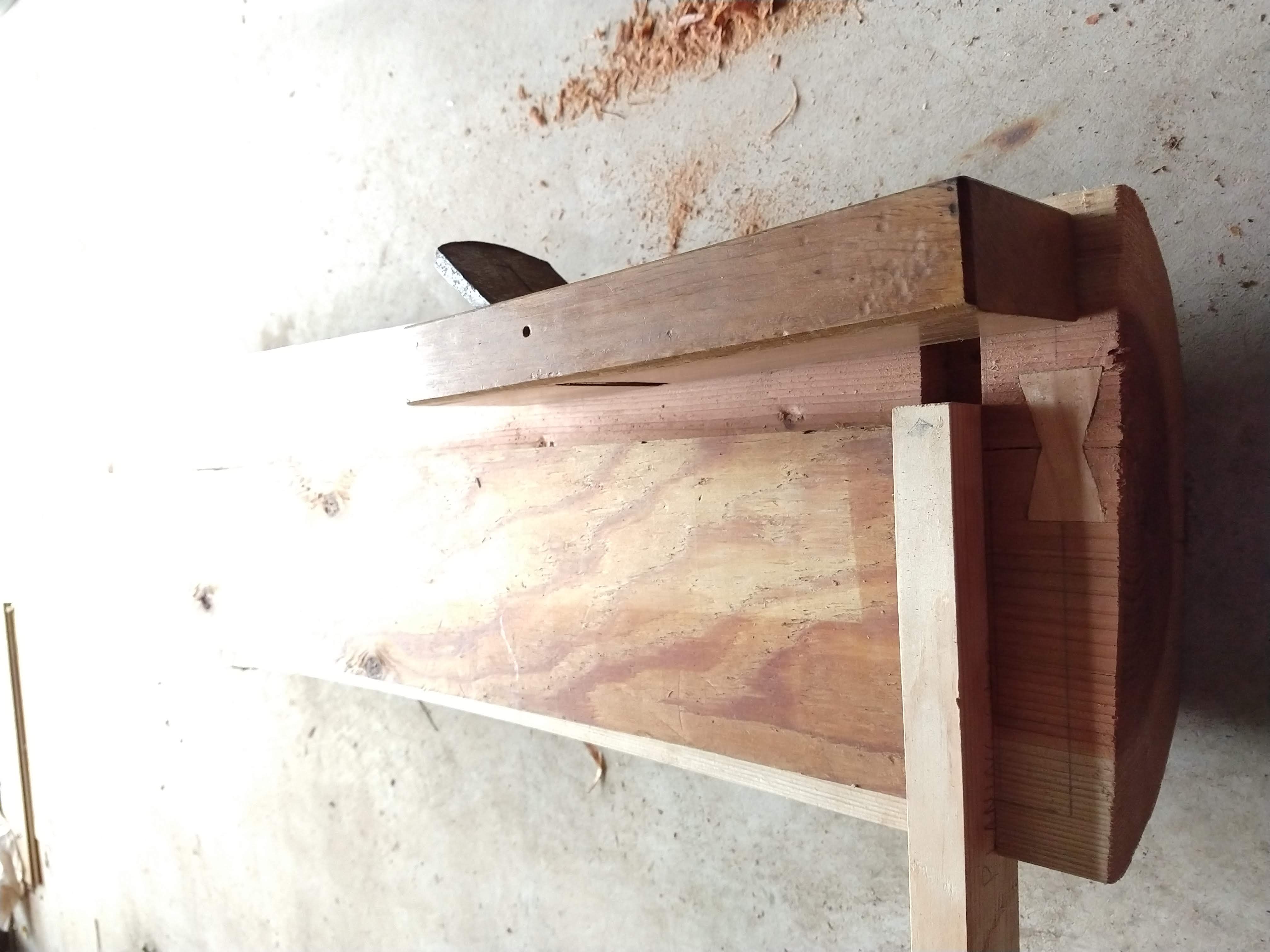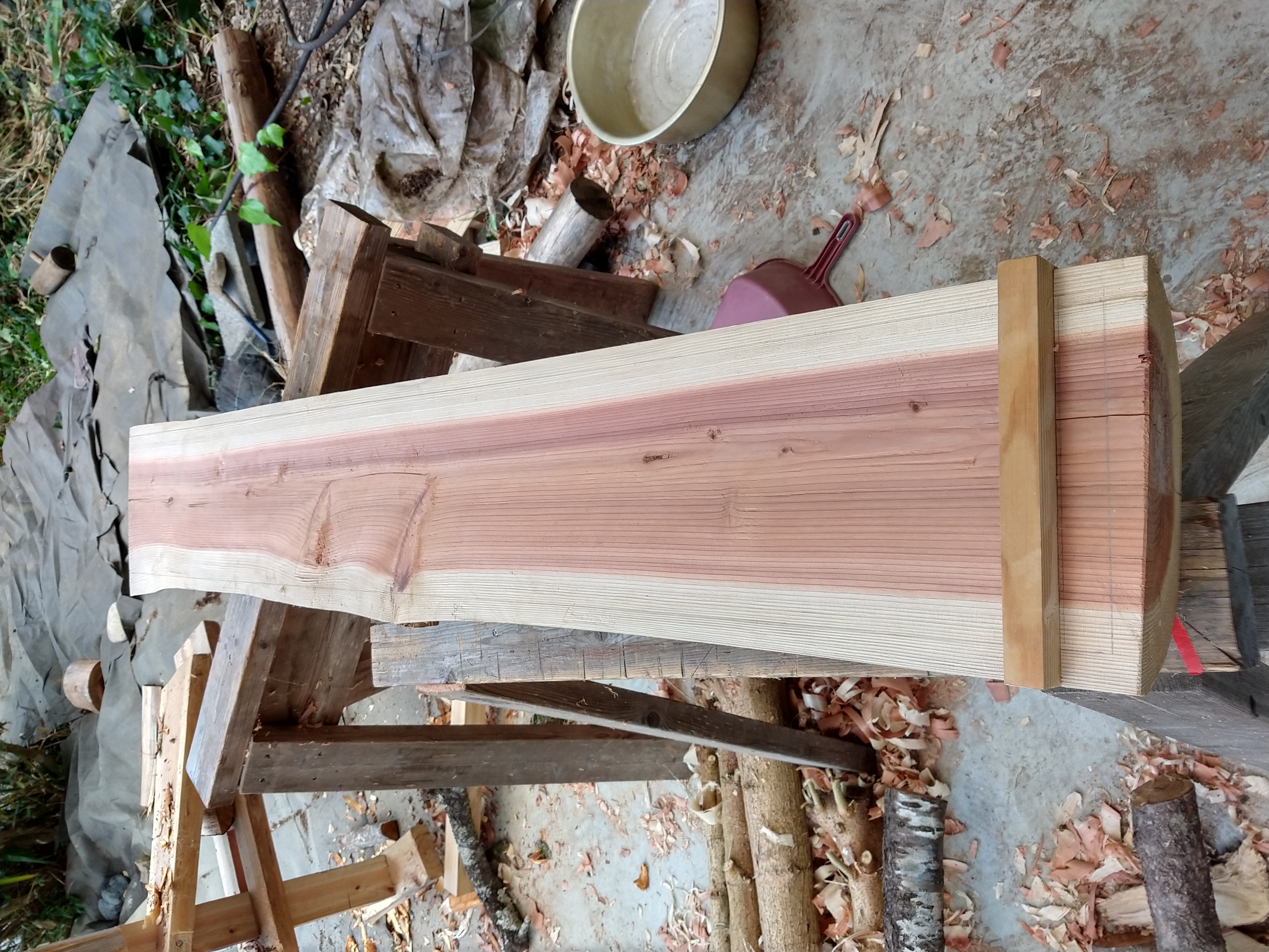 I decided to use the other half of the log I split to make a shaving bench into a planing board. It is usable now. I'll need to make a few more stops of different heights, but it's nice for planing on the ground.