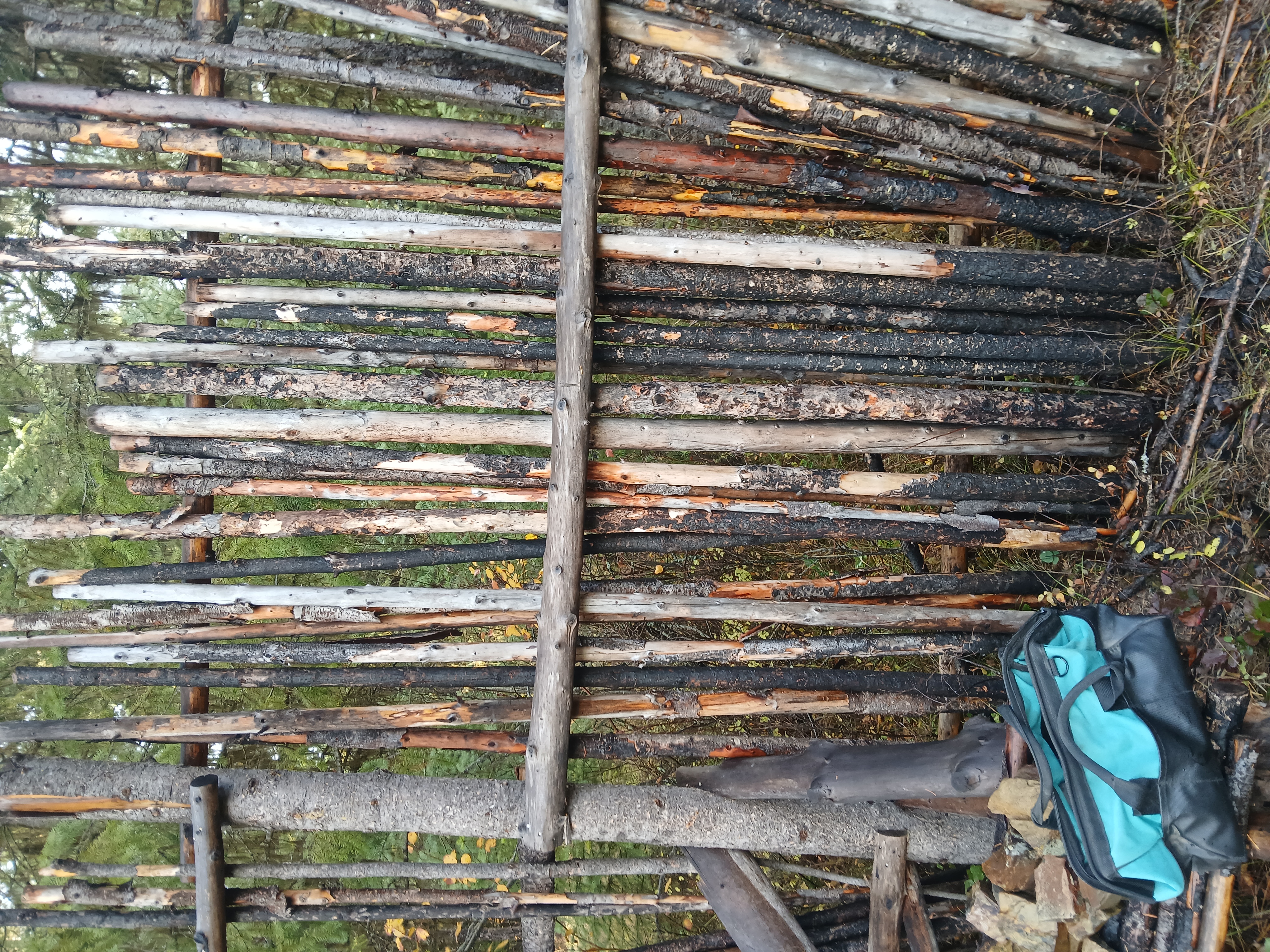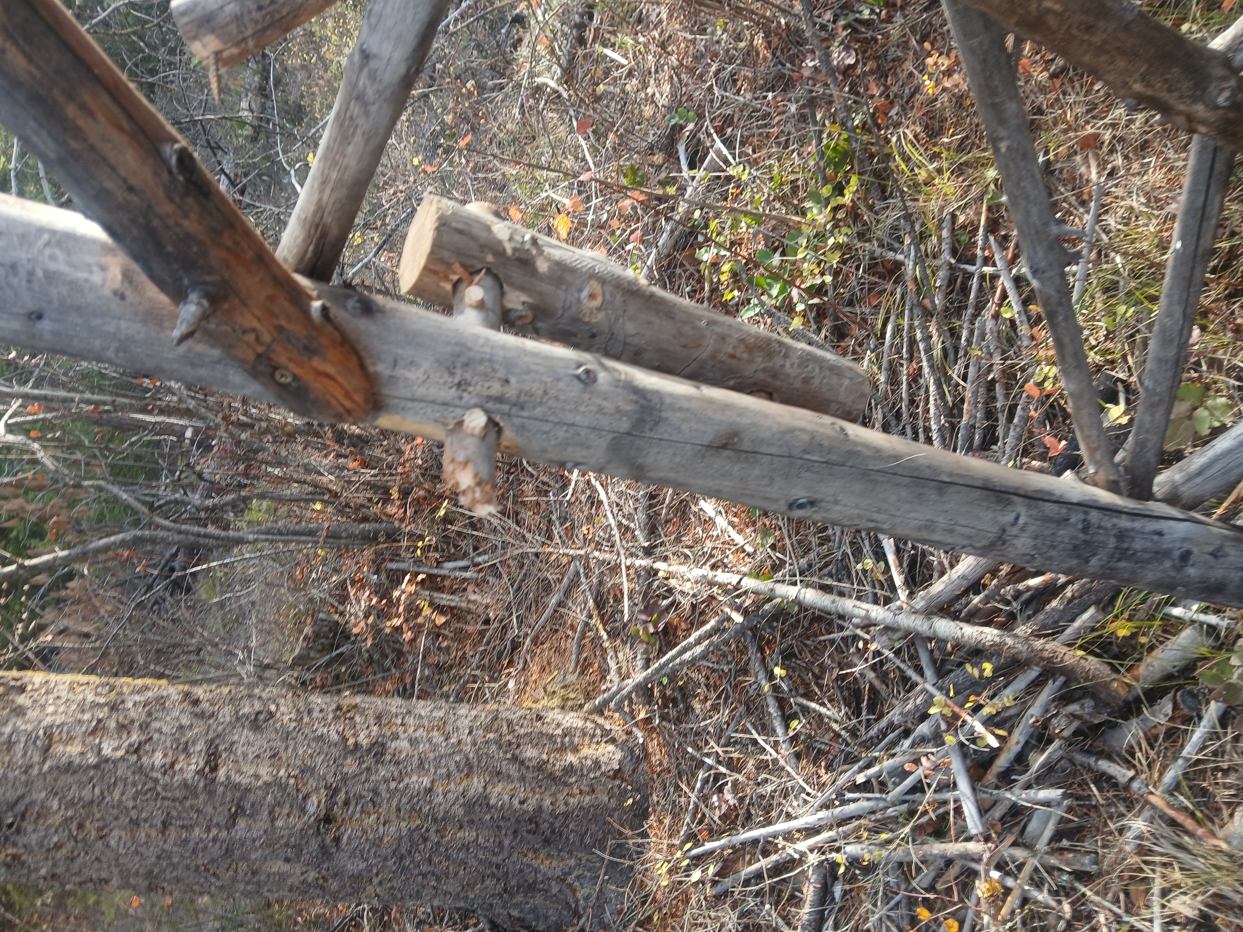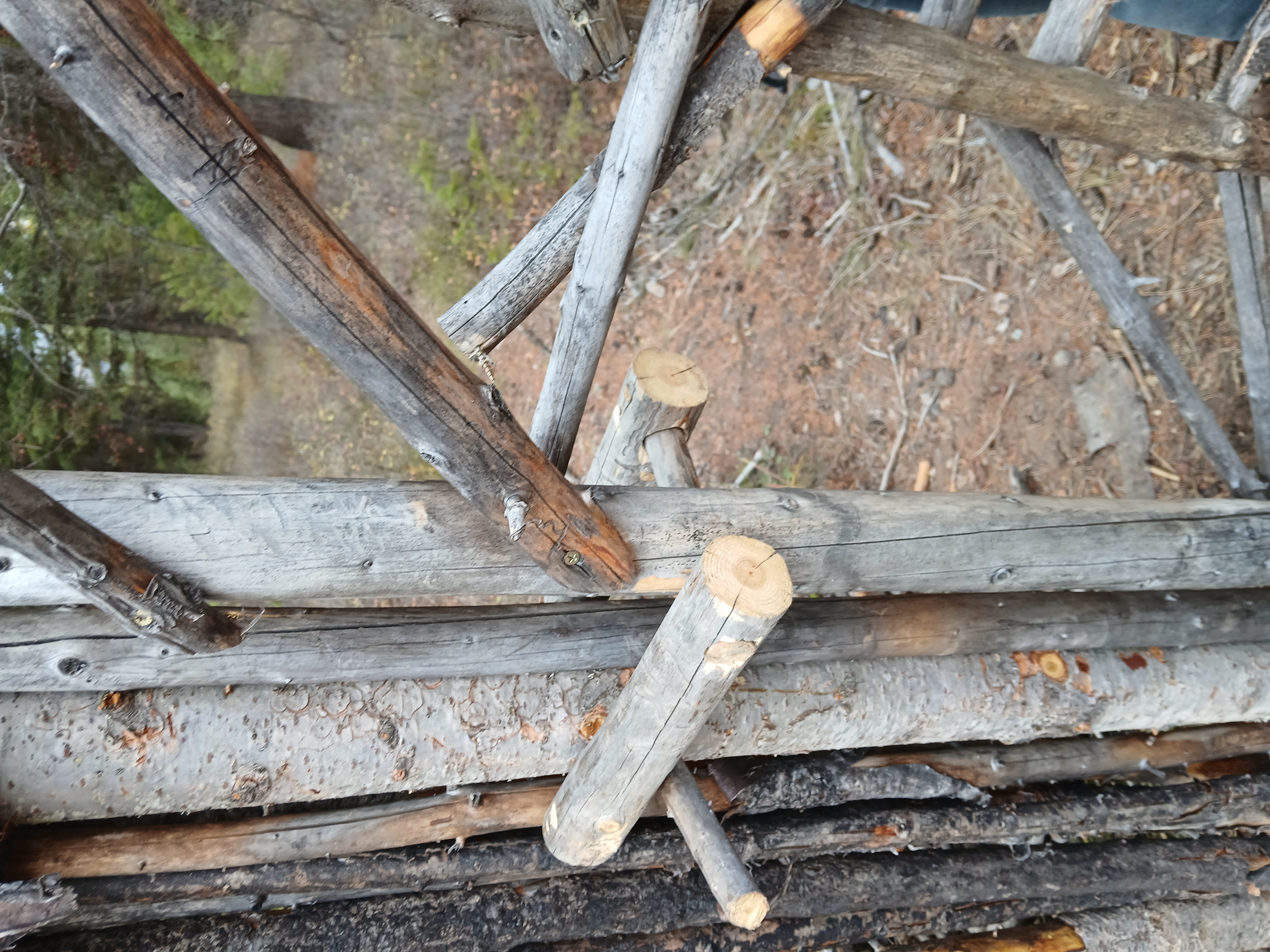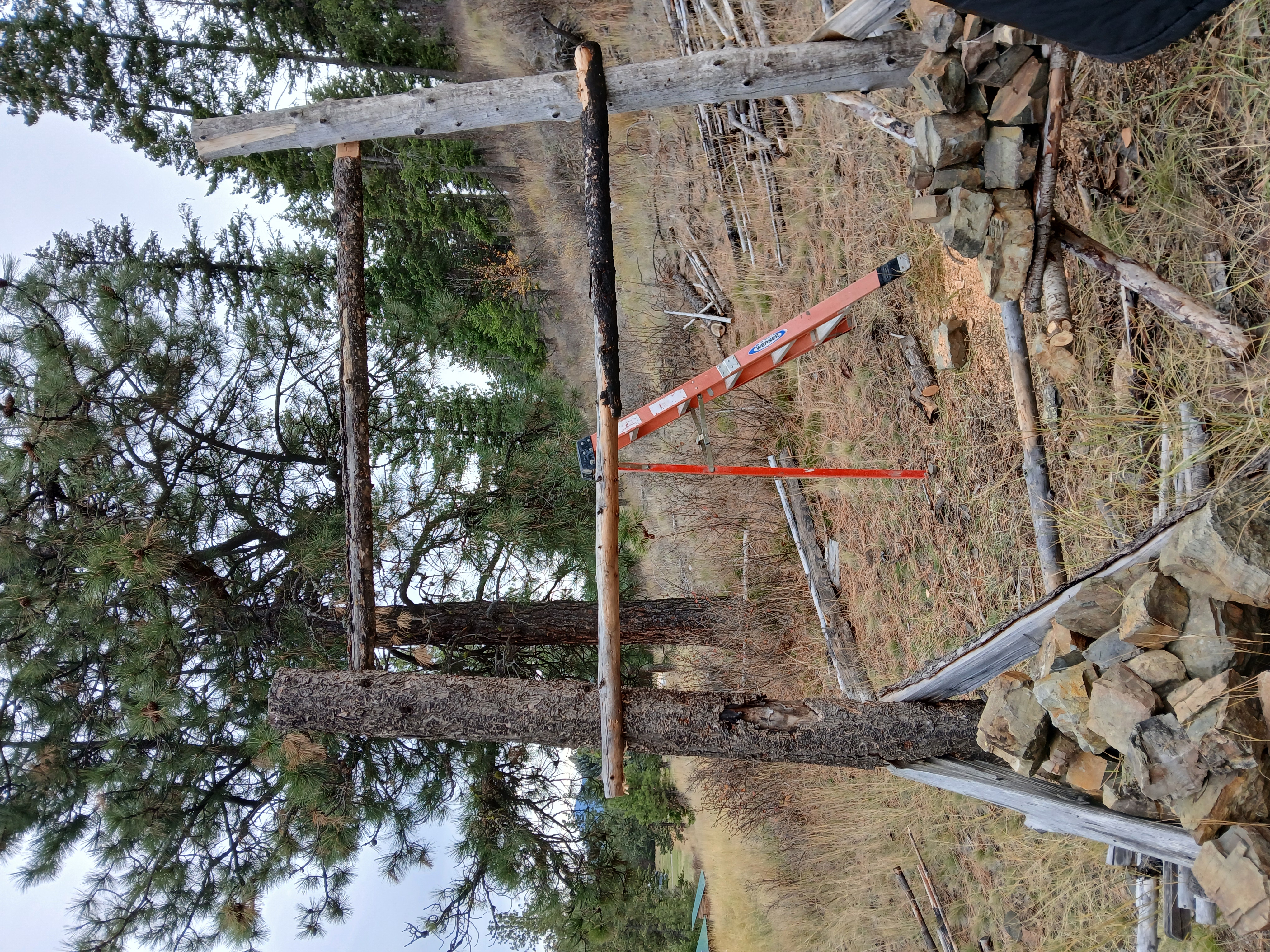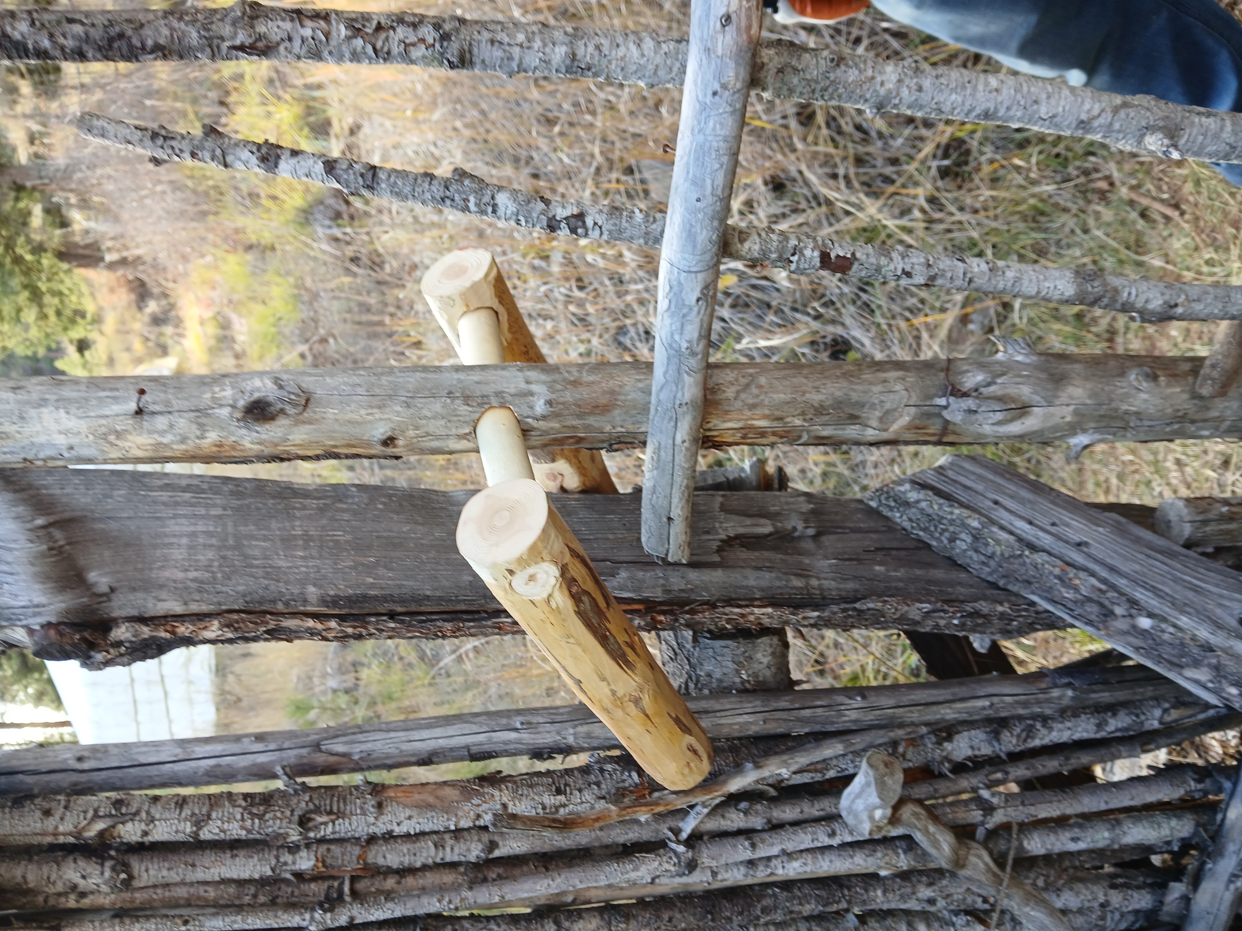 When we got back to basecamp, we shifted gears to the next big task: felling two trees to build a brand-new, stronger, sturdier gate from the ground up. After felling, logging, and debarking the trees, we finally got the frame laid out and ready for the next phase.