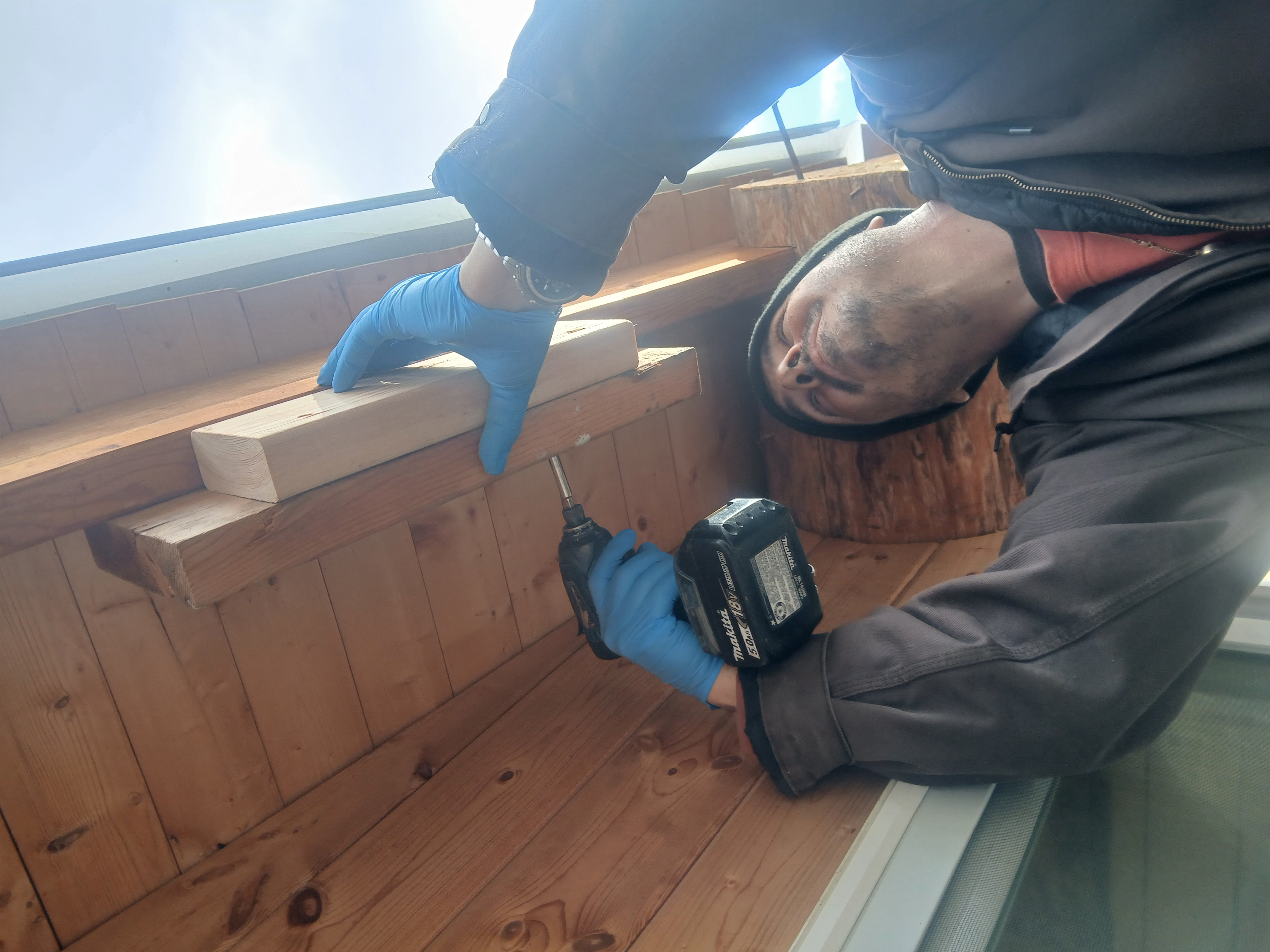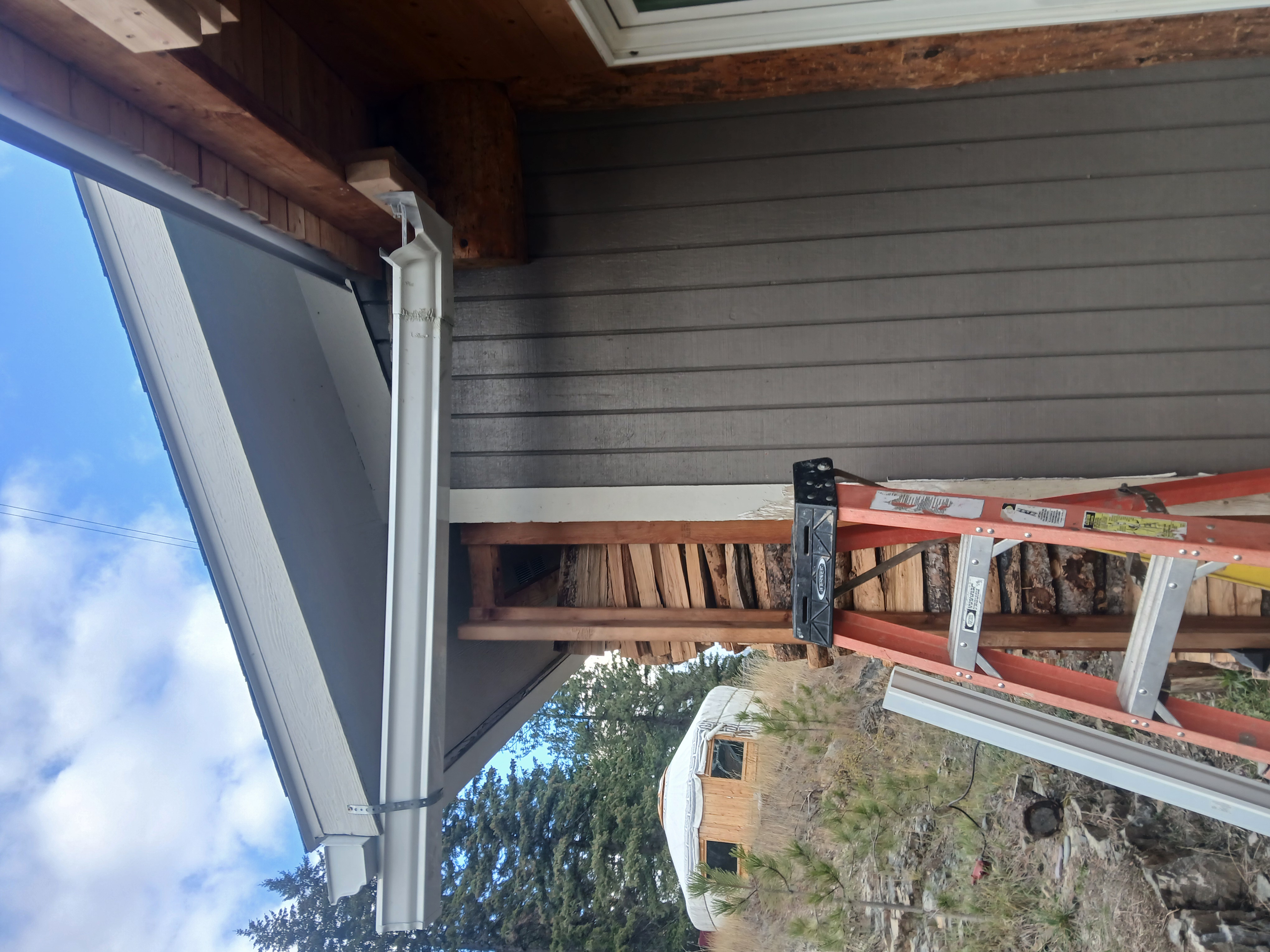 Back at base, we rolled up our sleeves for some chainsaw maintenance, sharpening and tuning so the saws stay happy and humming. Afterwards, we got started on the gutter project, which might sound simple until you realize every piece insists on having a personality of its own.