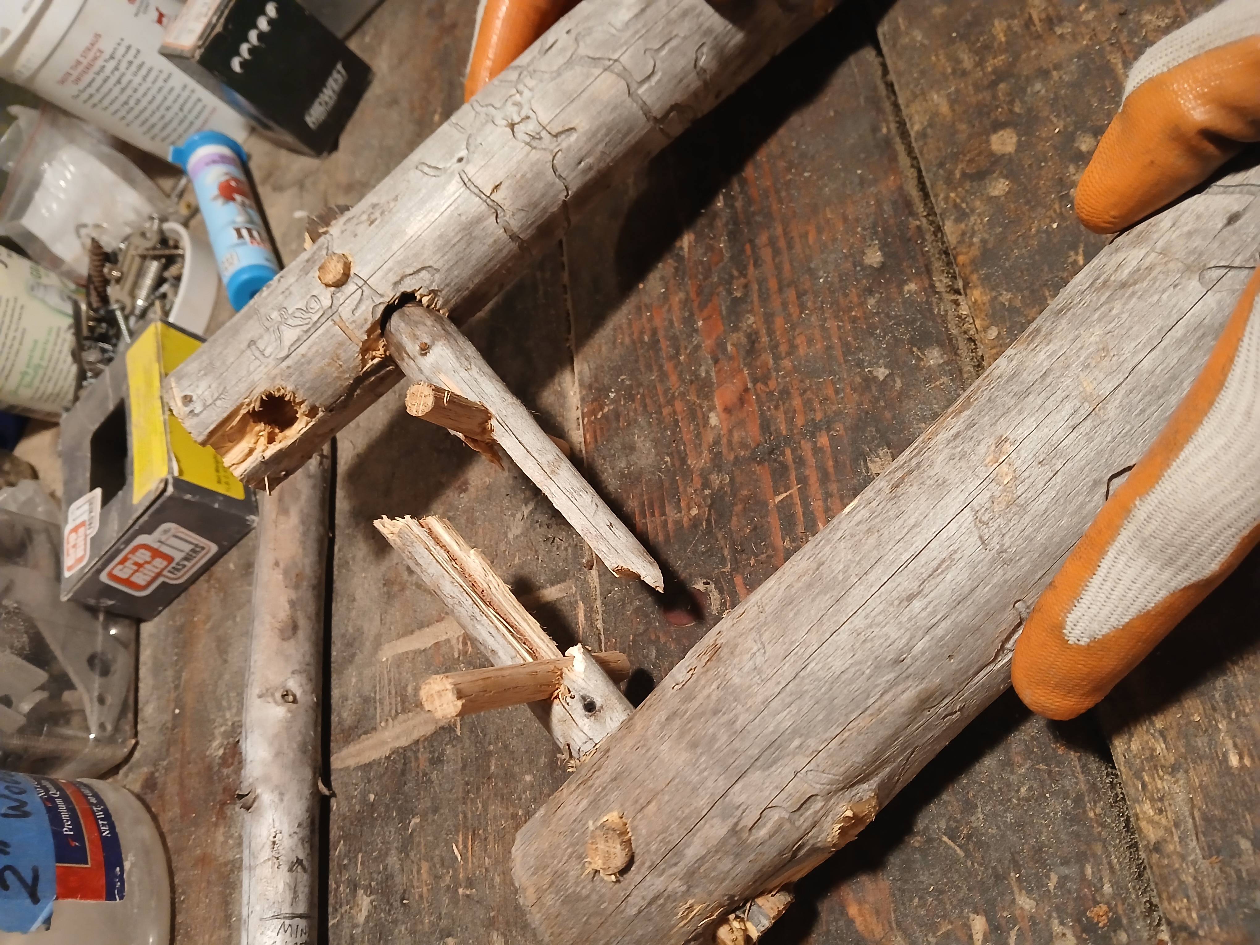 Once things were warmed up, Stephan, Zack, and I headed out to the laboratory. We walked the full fence perimeter and took another close look at the damaged gate handles — those persistent deer left quite the mess behind! After assessing the situation, we processed all the remaining kindling on-site before wrapping up our work there.