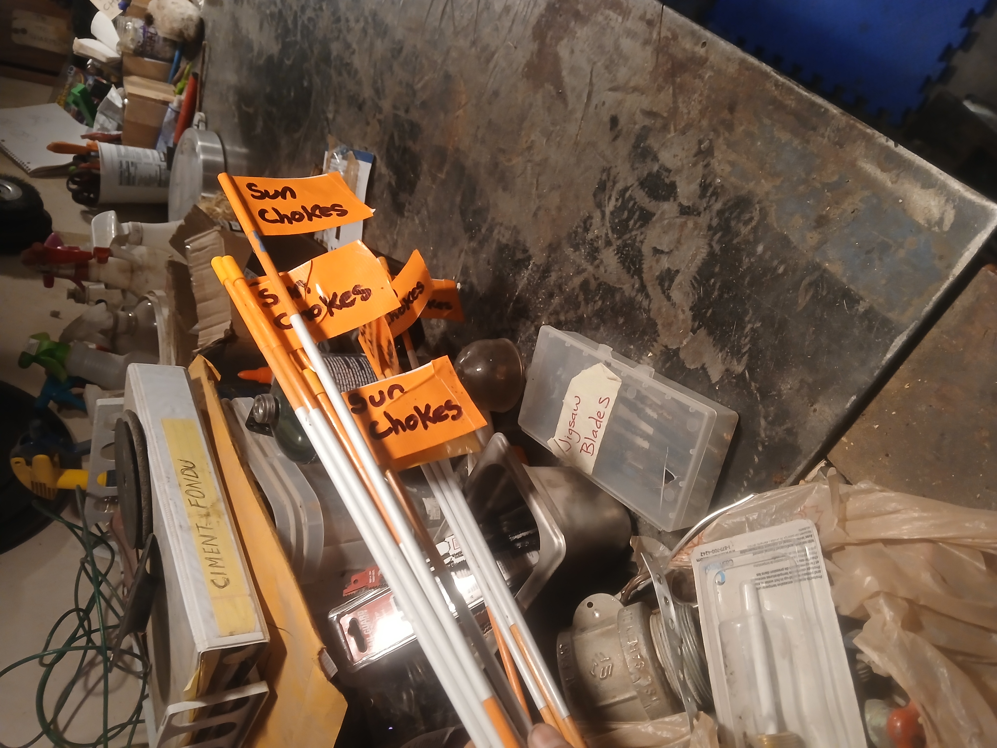 Then it was time to bring some order to the chaos — I ventured out to place sunchoke signs at both the Turtle Berm and the Tipi Berm, marking their domain like a druid labeling his potion jars.