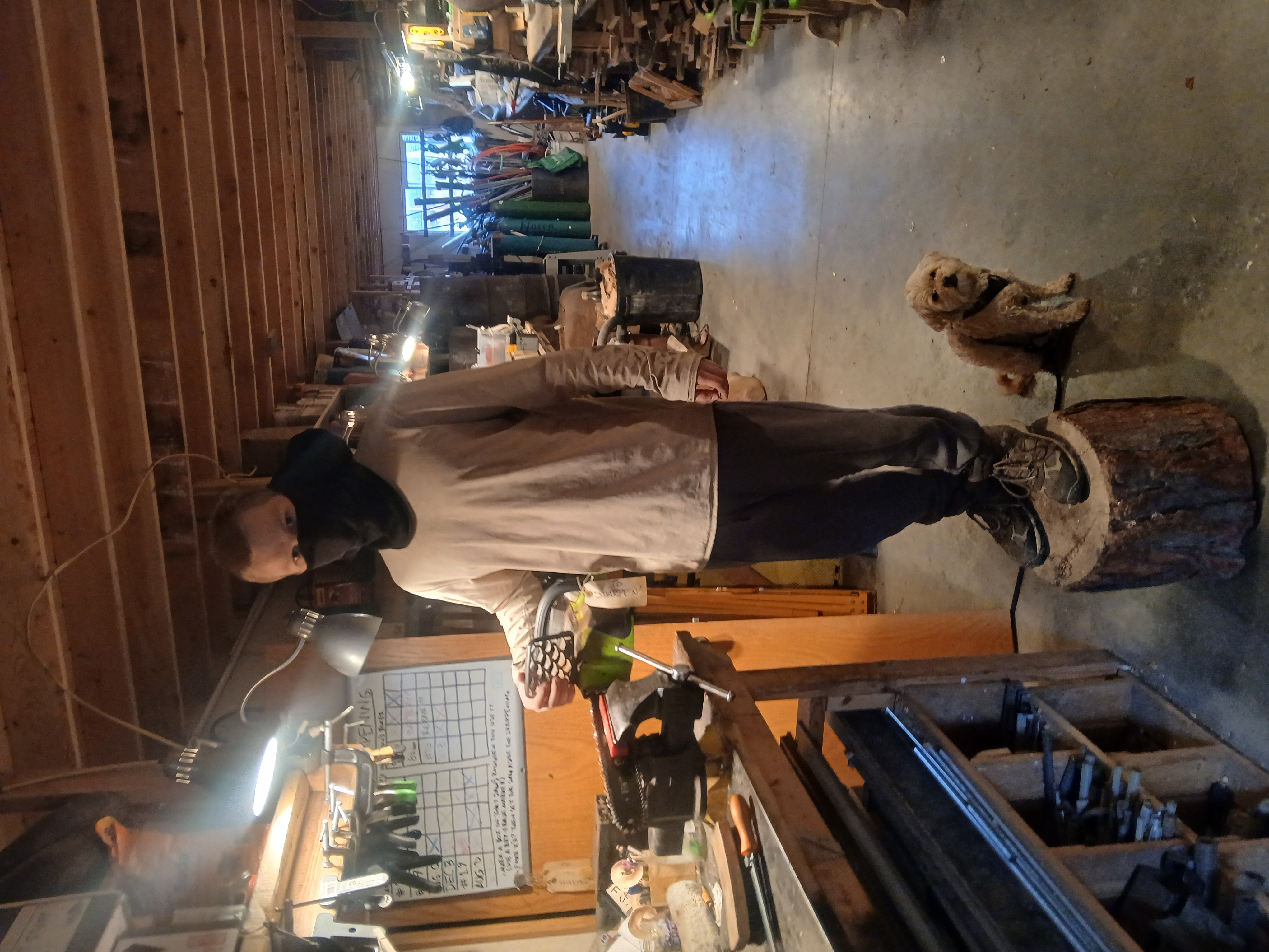 Later in the morning, I spent some time with the new boot, showing him how to properly maintain and sharpen a chainsaw. After going through the basics — cleaning, checking the chain tension, and oiling — I had him test his work on a log, and he did great for his first time!