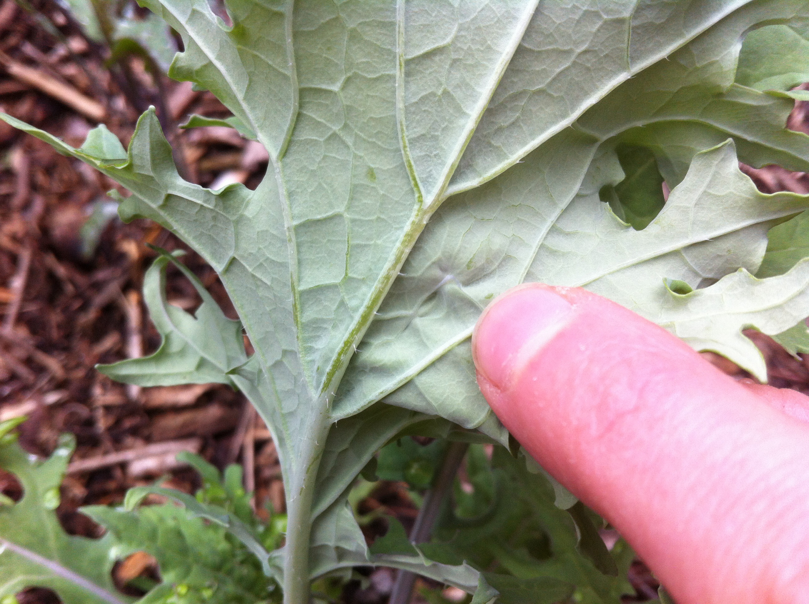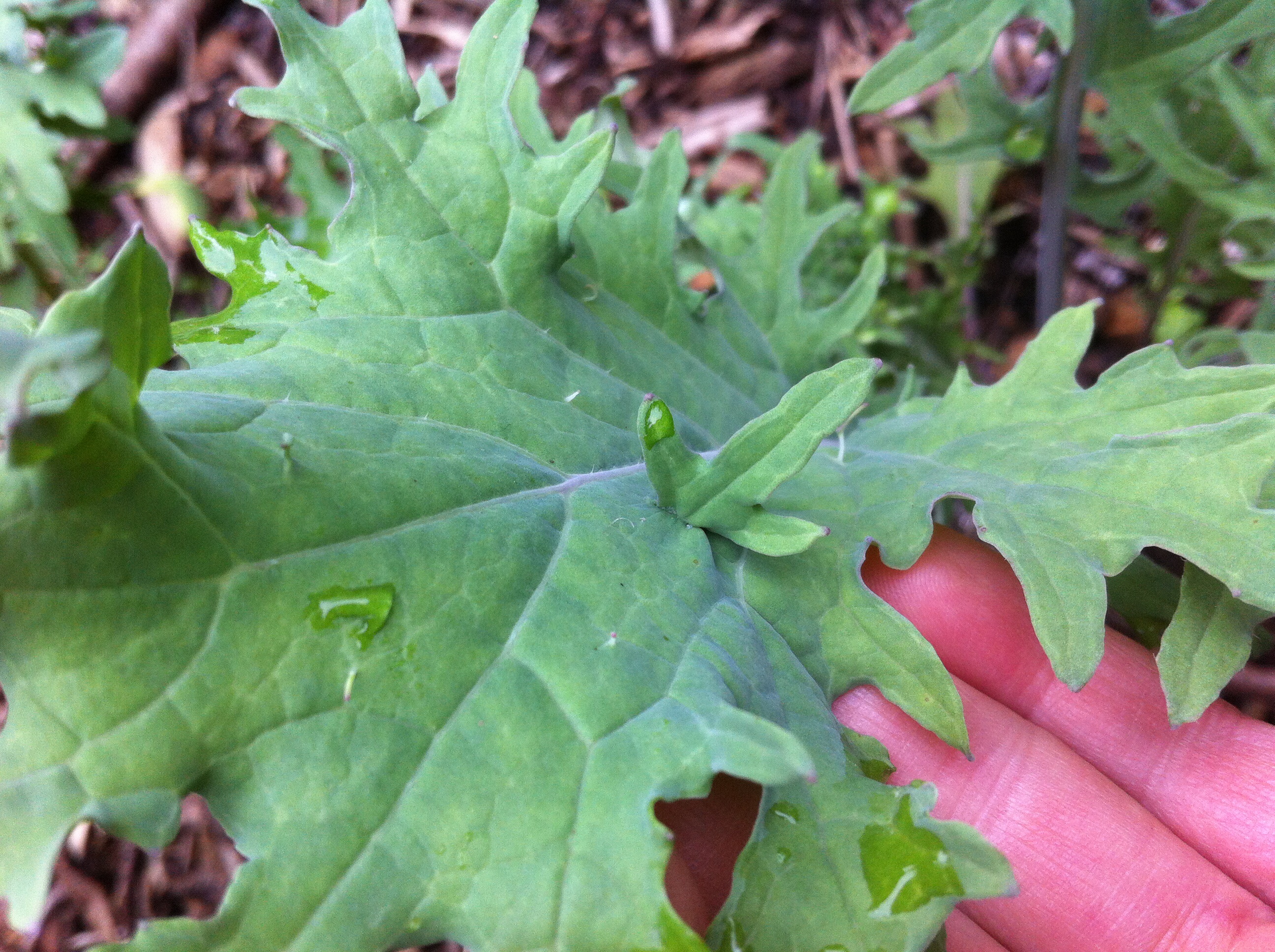 A friend gave us some starts of red russian kale about a month ago. We planted them and they've been doing fine. Today, we noticed these strange spots where there's what looks like a tiny new leaf growing out of the main leaves? There's sort of a puckered spot on the underside. I'm not terribly concerned, mostly just curious what might've caused this. Or if it is normal and just not something I've seen.