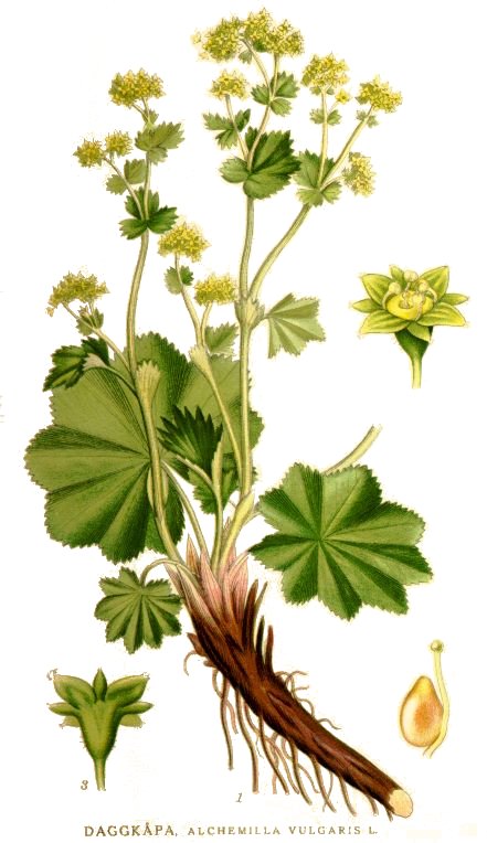 The Lady’s Mantle (Alchymilla vulgaris) or Dew’s Mantle, Mantle herb, God Mother’s Mantle, Help for Women, All women healer.