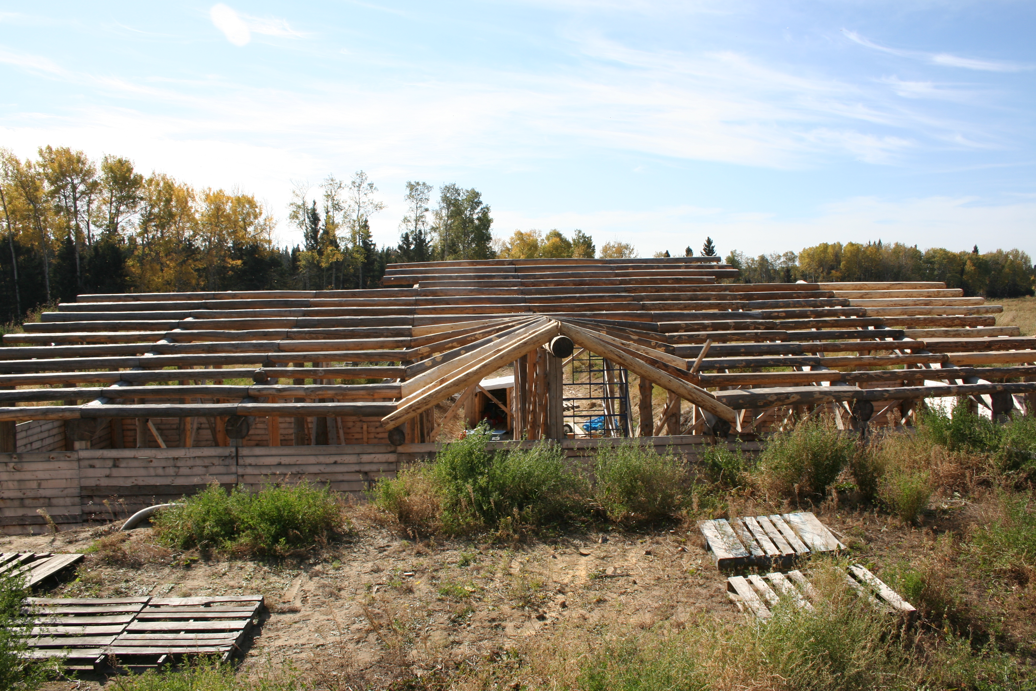 Mark Brunnr wrote:that last picture of the interior ceiling is right on what I’m planning- beams on posts with cross beams every 2 feet, and dimensional lumber to cap it off. Then I’ll be putting the membrane on the 2-by lumber, then a few inches of soil followed by insulation and another membrane. Then the top 2 feet of soil.
