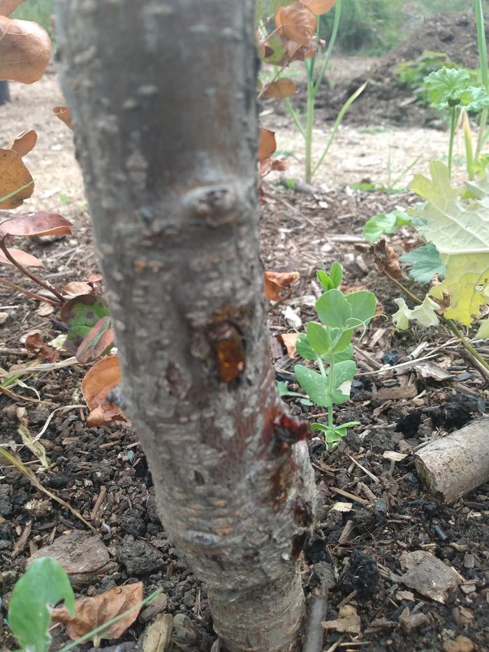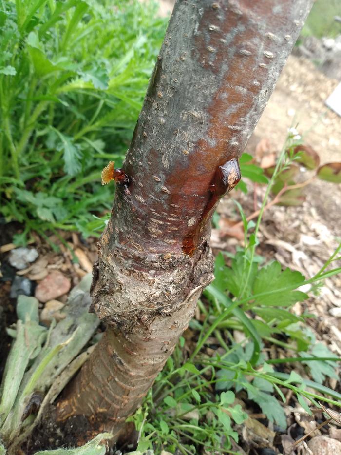 (It doesn't help that we mulch a lot with wood chips, and we believe it likely that we mulched with some chips from other infected stone fruit trees)