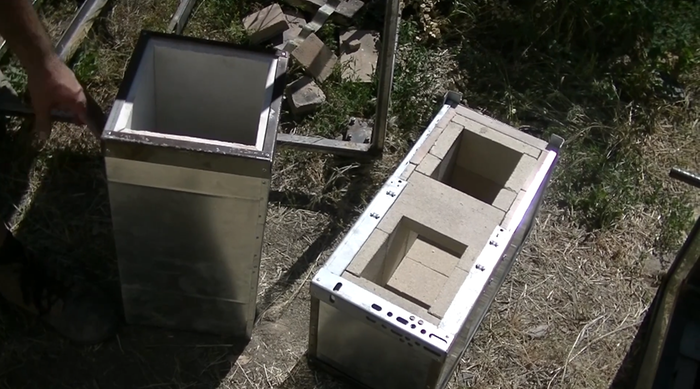This is typically four pieces of ceramic fiber board that are wrapped with a metal case or a metal frame. Note that ceramic fiber board is rather delicate when you first work with it, and it becomes hard and brittle once it has been heated.