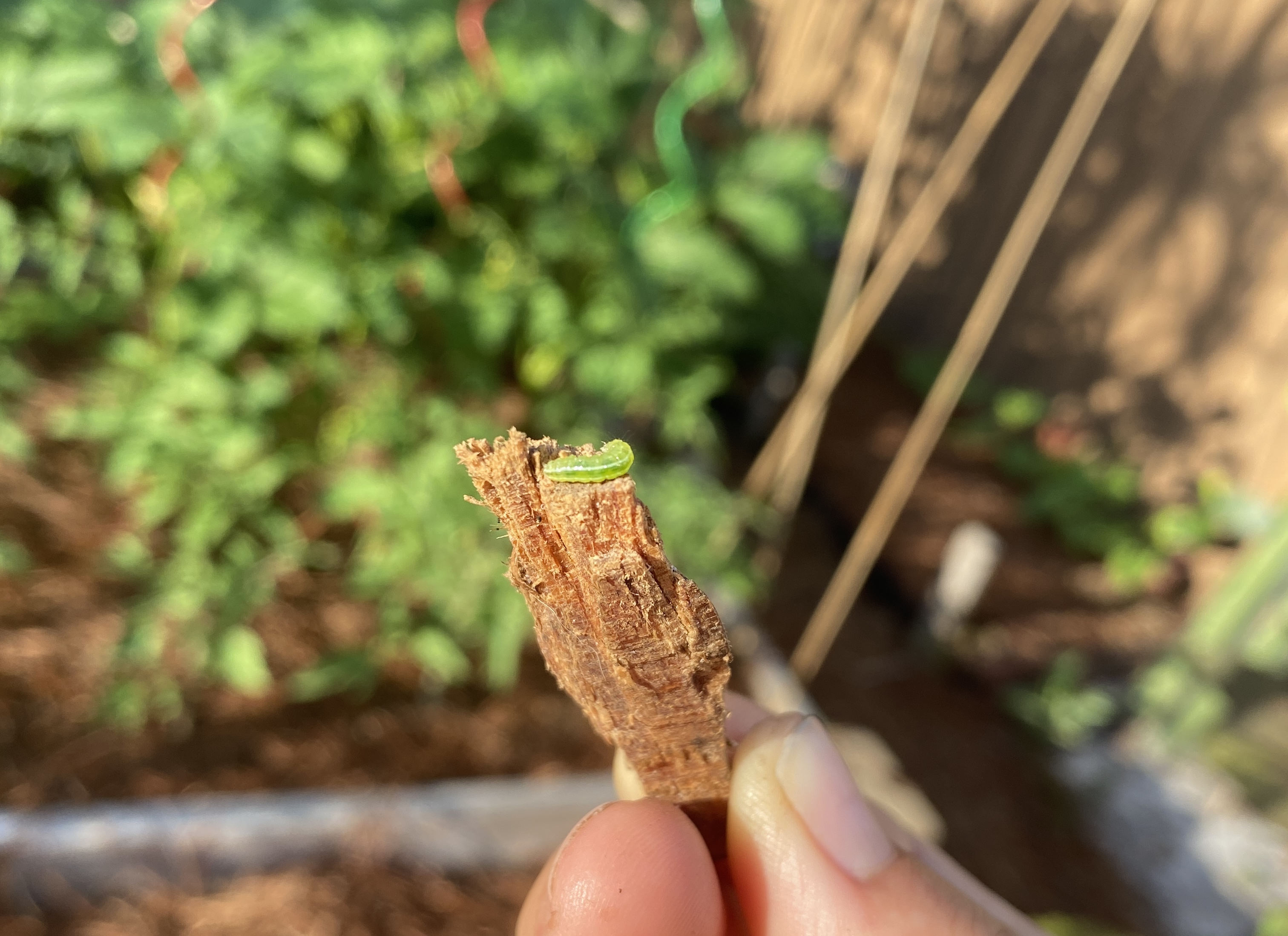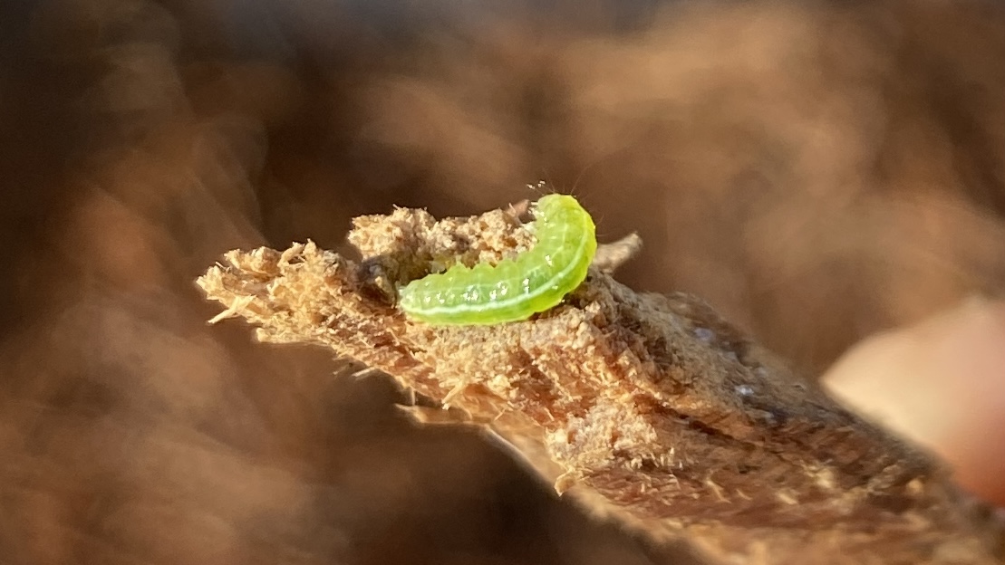 A butterfly will lay her eggs on host plants. Once the egg hatches, the larva emerges and feeds on its host plant.