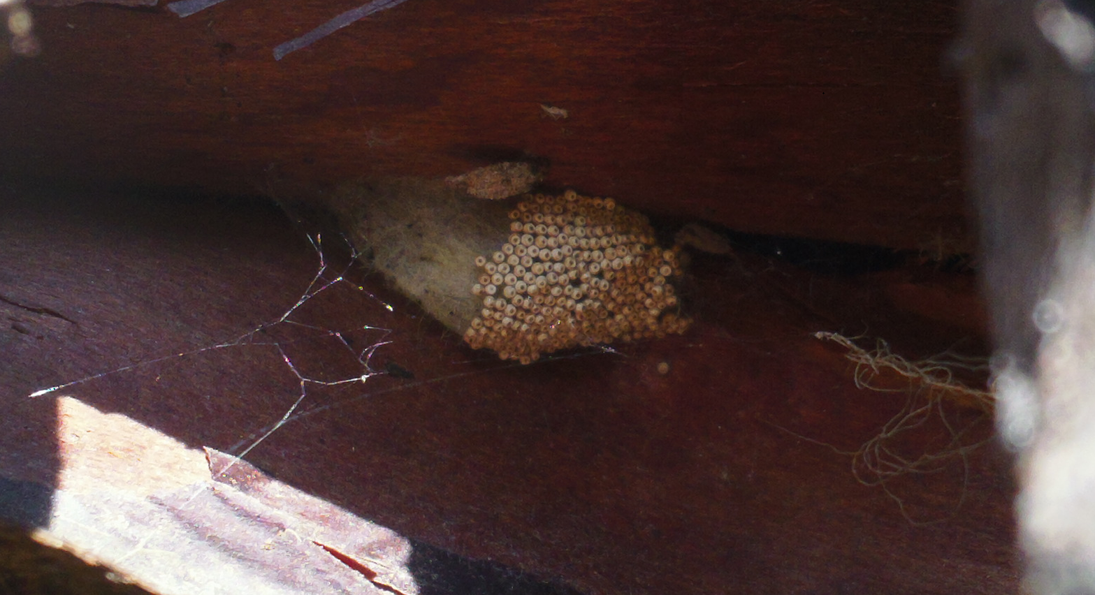 Found this cocoon and clutch of eggs while mending the fence up there.