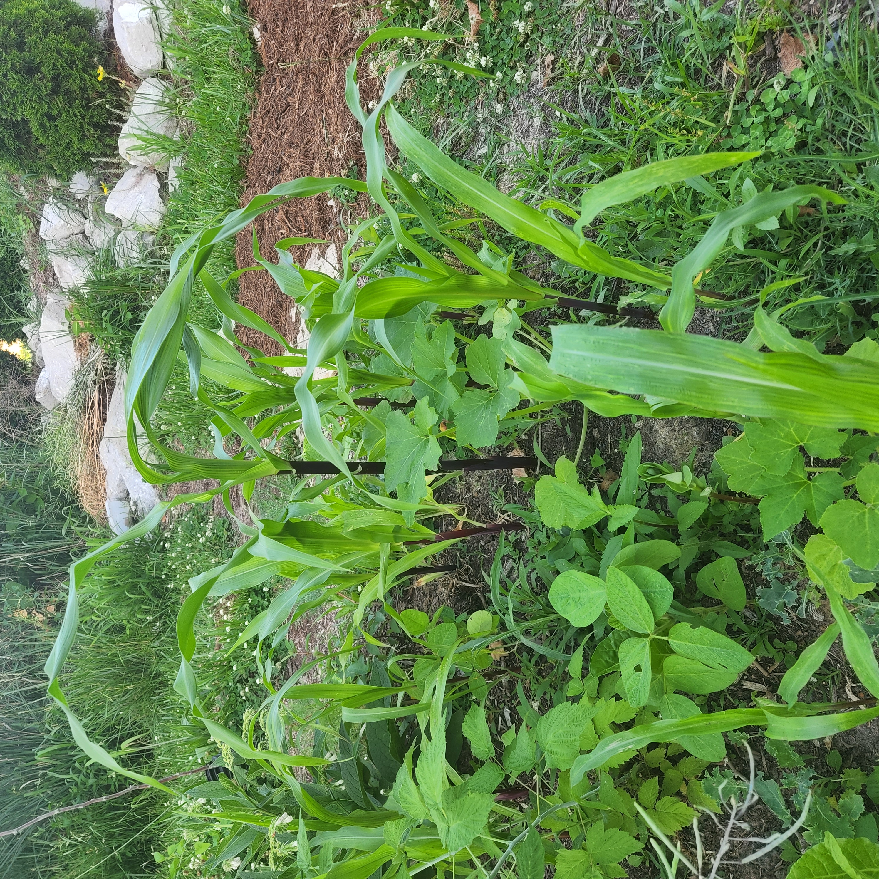 One thing about corn genetics, is glass gem is bred by a Cherokee man, but I know 2 of the Corns, long time read ago, where of different tribal decent then Cherokee. Pretty sure it’s more a western corn, but can’t find the info again. I really like native seed search for corn, mostly western arid corns, highly recommend them for crossing. Heirloom corn has much more protein in seed, protein correlates directly as nitrogen, therefore may do better from that standpoint. I didn’t fertilize or irrigate either, some I planted a little to tight, but the latter planting is getting fat. Hope rain falls, it still alive with almost no rain since the later batch sprouted.