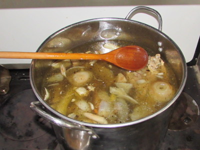 The next day I skim and save the fat (makes heavenly biscuits) and pull the meat from the bones. I use the meat for a chicken pie or soup. The bones and stock go back to the pot, and I add chopped onion, celery, and carrot, and half-a-cup of vinegar. Then simmer on low for two more days. The vinegar dissolves the minerals and gelatin from the bones, making the stock nutrient dense and super healthy. Lastly, it's strained and canned at 10 pounds pressure, 20 minutes for pints and 25 minutes for quarts.
