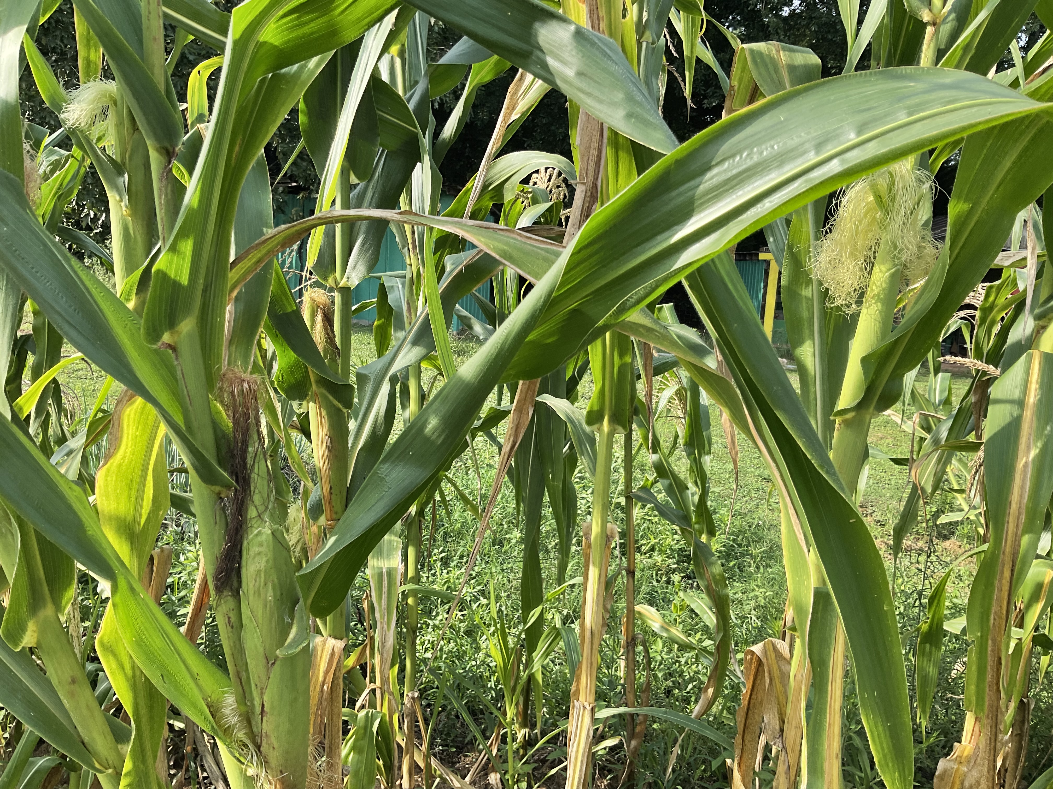 And a bear that scratched an eastern red cedar. Corn grew with hardly any rain, the later planting came up without any rain, got at least one rain when it would’ve been size enough to fertilize. No rain for at least a month, finally we got a few inches of rain in a few days. Put into the ground with just the seed, no compost, added organic matter, or any type of fertilization. Field has what I would think of at least 100 lbs per acre of nitrogen. Had used ash and fired soil on field for earlier years planting. Field was neutral on purchase, along with proper amounts of P and K. Has a fracture at head of field that releases water, so some of the field is similar to a flood plain. You can see the fracture running diagonally across field, with increased growth. Use a lot of fire residual buried in rest of field, with little added to garden. I mow continuously with this amount of growth. Anyone else have a field that does this?