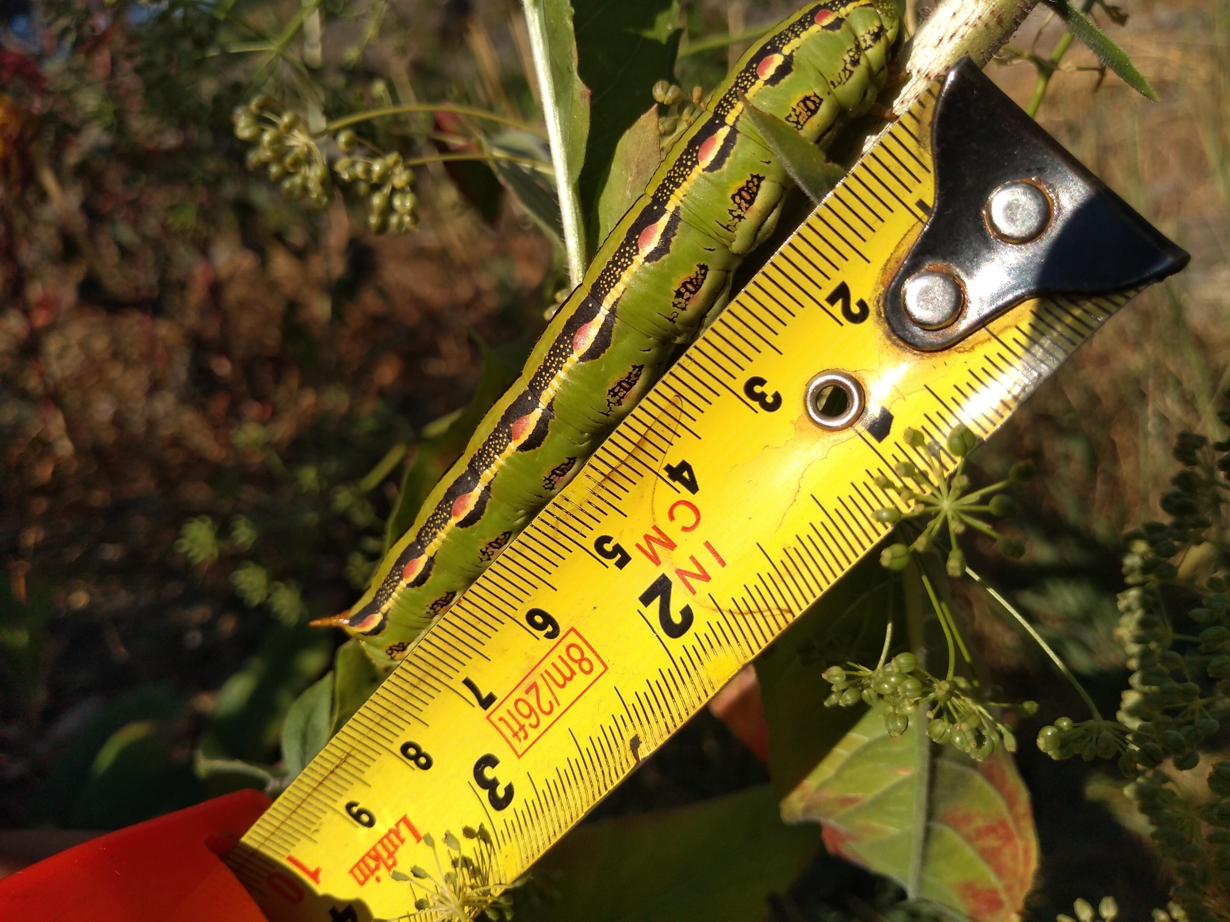 Wow, giant caterpillar poop! I'm estimating the poop is about 2 1/2 to 3 times the size of the pictured caterpillar. This would make the pooper about 20cm or 8 inches! According to