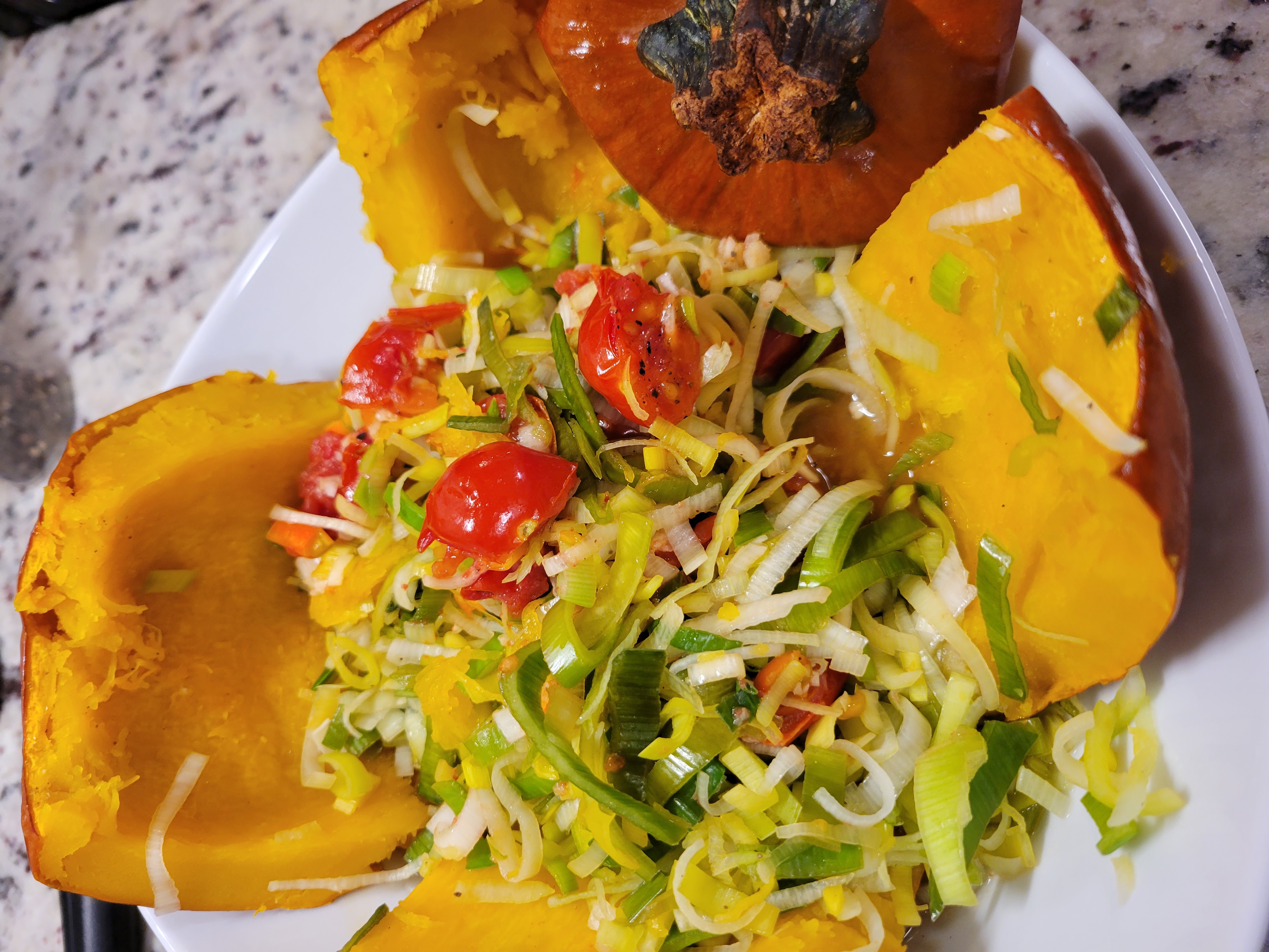 She always served the pumpkins in a small separate bowl and we just poured entire bowl on top of the mashed up roast...