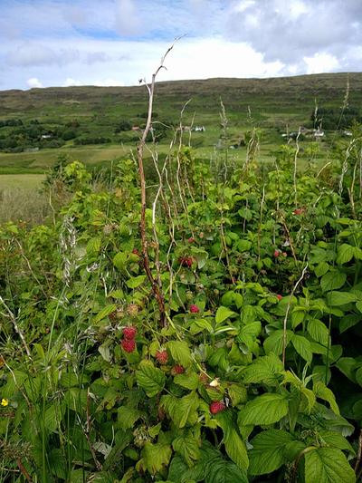 Now heading into late summer, there is a feel of harvest in the field with grass seed heads dominating the undergrowth. Just now is raspberry season - I have more berries than I have time to pick which is great! These ones pictured are supposed to be primocane - fruiting on this season's canes in autumn. This is too late for them to ripen here; they set in November and never have any flavour, although the birds still eat them! I never prune them however, and they fruit again on the same canes quite early in the summer season. I've got a couple of varieties which I think I will propagate in a few more places in the field - I think a bit more shelter will benefit them.