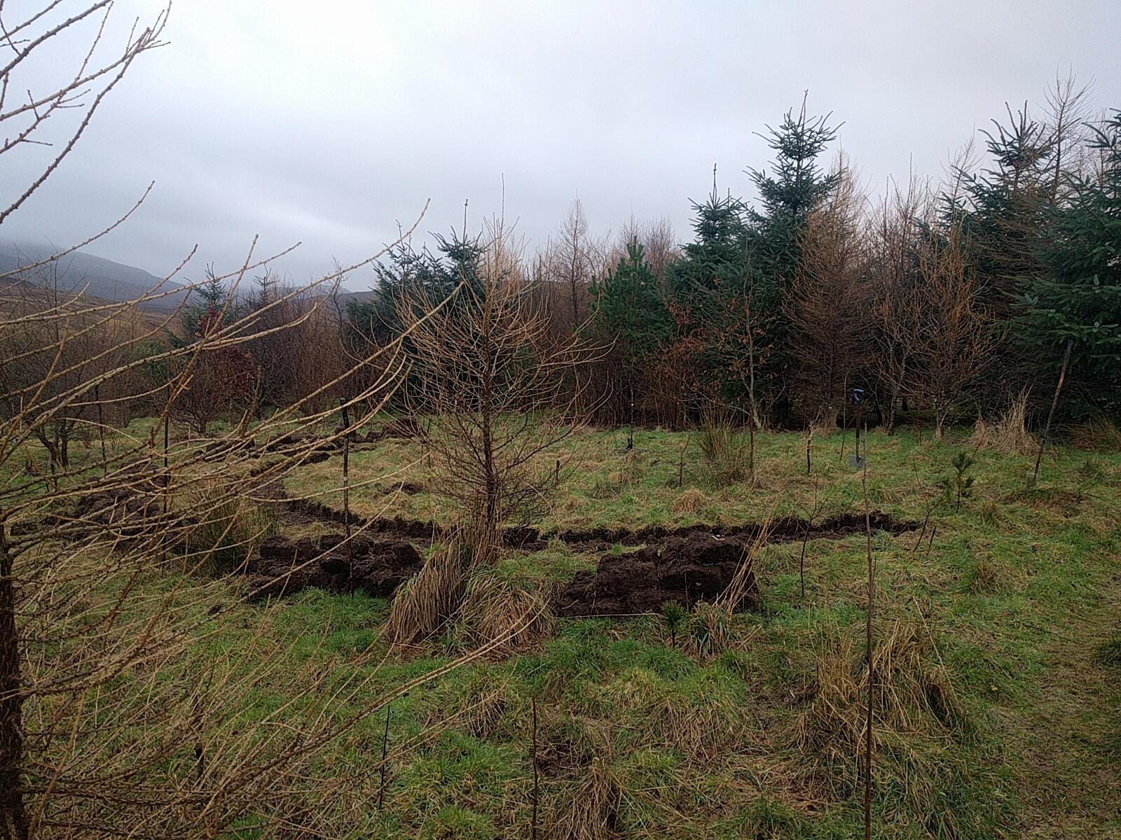 Basically it is alternating quick growing, slower growing and shrubby trees over three rows. I used a mixture of trees for each type - both evergreen and deciduous. It is pretty easy to tell where the windbreaks are in the treefield by the variety of trees there. The coppice trees are planted in blocks of the same variety, whereas the windbreaks never have two trees the same side by side. Overall I have been pretty happy with how they have worked out. Some of the trees did less well, but the losses were few, and I backfilled with spare trees in subsequent years. One thing I did do was put in a few extra spruce trees. Although they have a poor reputation, due to monoculture plantations, they do form a very effective windbreak relatively quickly in my experience. They can spread a little wide and shade out smaller trees a bit, so need to be positioned a bit carefully. I may indeed have been a bit prolific with planting my seedlings rescued from plantation pathways and have to relocate a few of them.